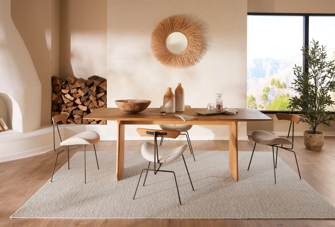 The Jara hand-woven rug collection, inspired by the Hindu goddess of household happiness, features all-over...