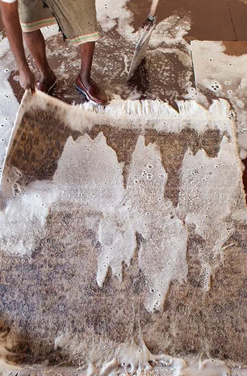 A process with many purposes. Washing controls the tones and overdye, it also balances the sheen. Each carpet has its own personality. We embrace the individuality of natural fibres as they react to water.