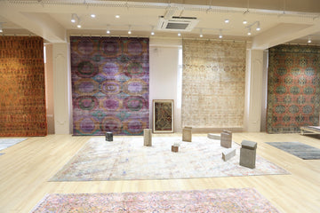 Our showroom is meticulously curated to present an array of unique, hand-knotted carpets that showcase the finest traditions and innovations in rug-making. Each piece in our collection is selected for its beauty, quality, and the story it tells. We believe in offering a collection that is not only diverse but also aligns with the notion of rugs as an art movement.