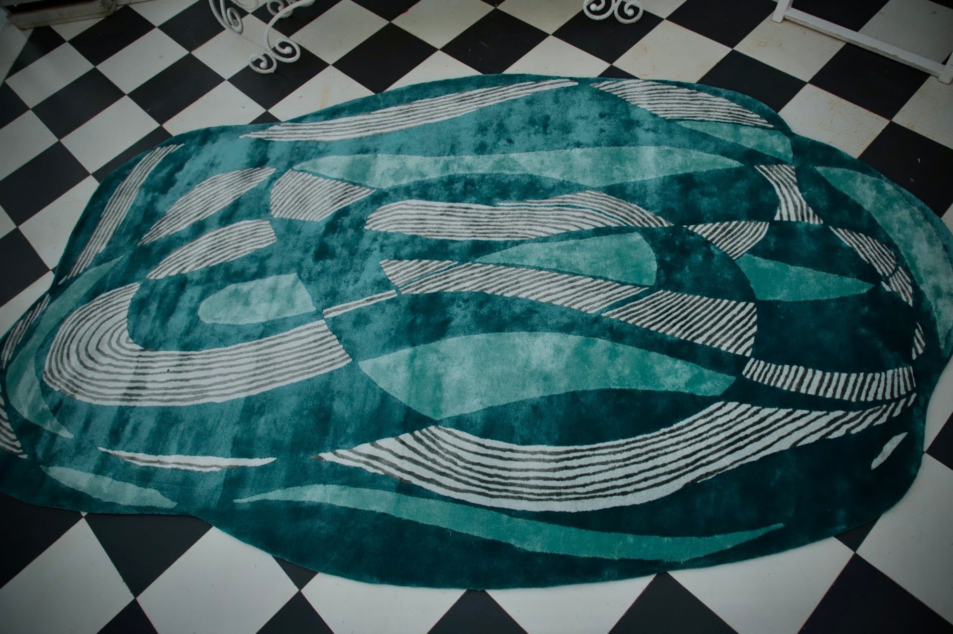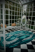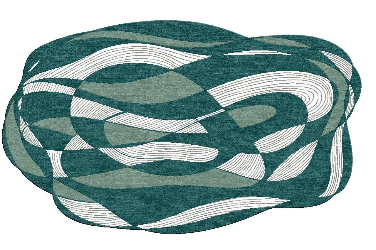 Aetheric Tides of Rhythm is a hand-tufted rug made from luxurious bamboo silk, designed to capture the fluid, rhythmic flow of nature. Its soft, shimmering texture beautifully reflects light, while the intricate design evokes the gentle movement of tides and waves. The rug adds a serene, dynamic element to any space, creating a calming atmosphere with its elegant blend of luxury and artistry. Perfect for enhancing your home with a touch of tranquility and refinement.
