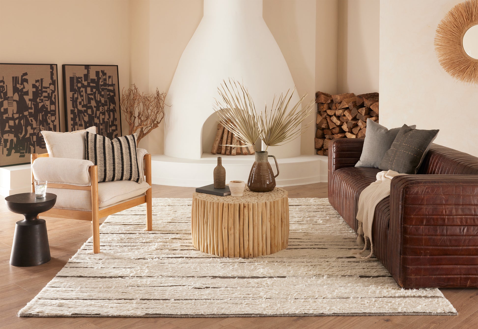 The Jara hand-woven rug collection, inspired by the Hindu goddess of household happiness, features all-over linear and diamond patterns that evoke joy and prosperity. Expertly crafted from all-wool shag, each rug adds warmth, texture, and timeless beauty to any space.