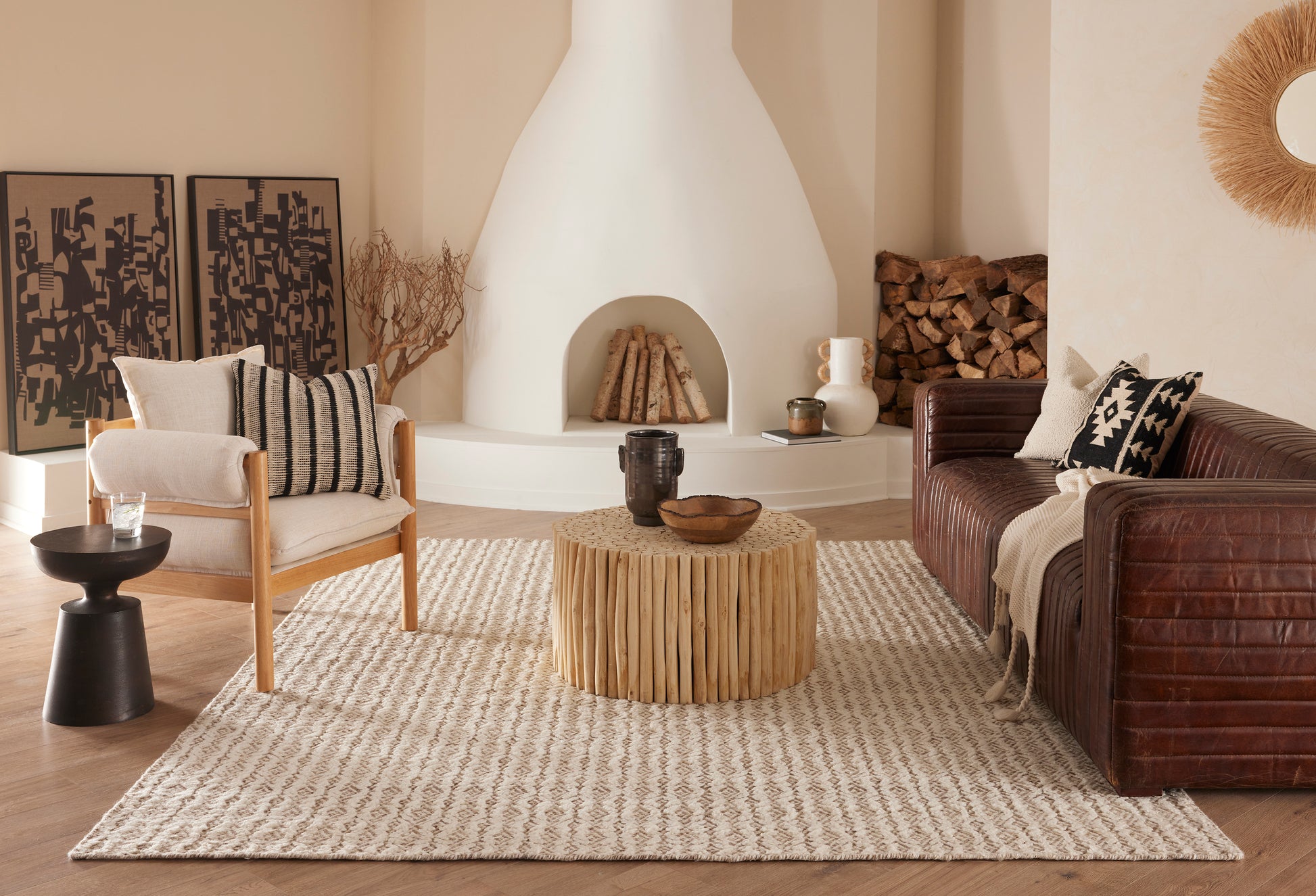 The Jara hand-woven rug collection, inspired by the Hindu goddess of household happiness, features all-over linear and diamond patterns that evoke joy and prosperity. Expertly crafted from all-wool shag, each rug adds warmth, texture, and timeless beauty to any space.