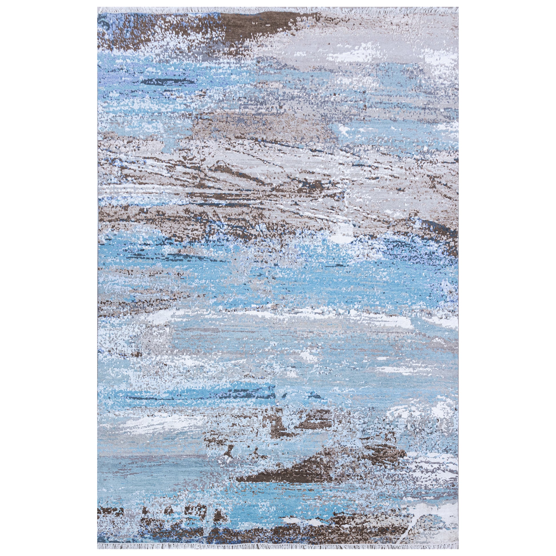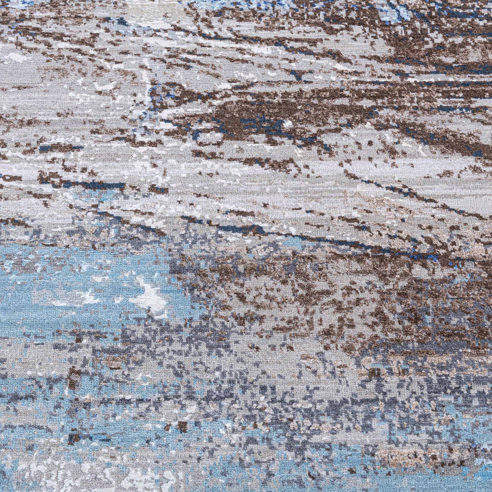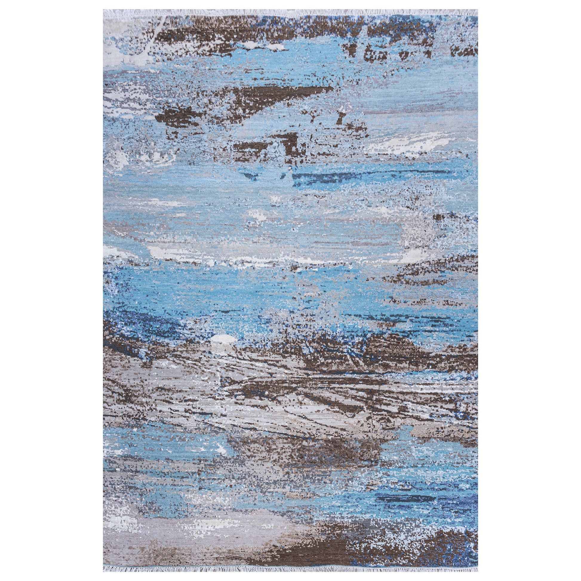 Modern Wool & Bamboo Blue Handknotted Rug