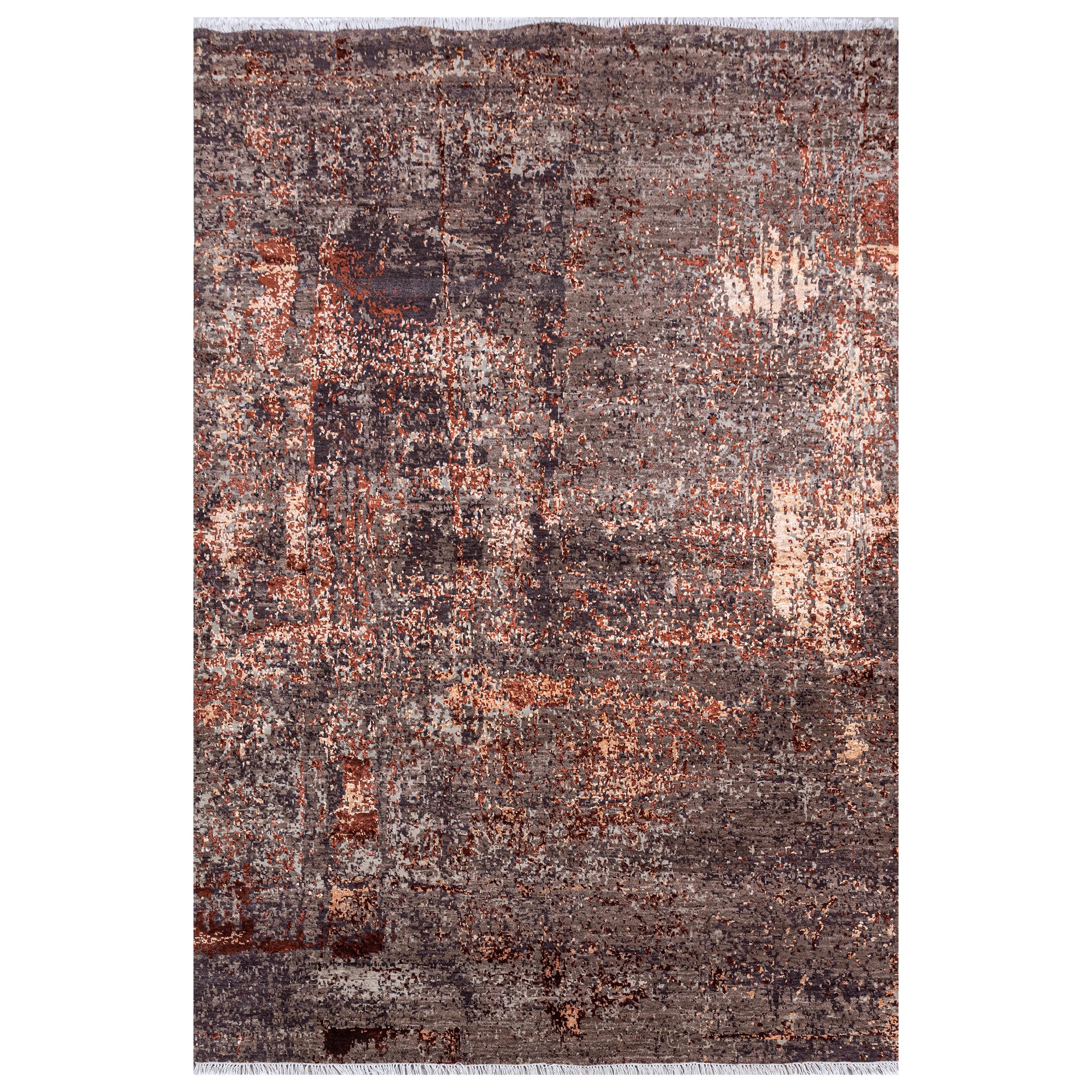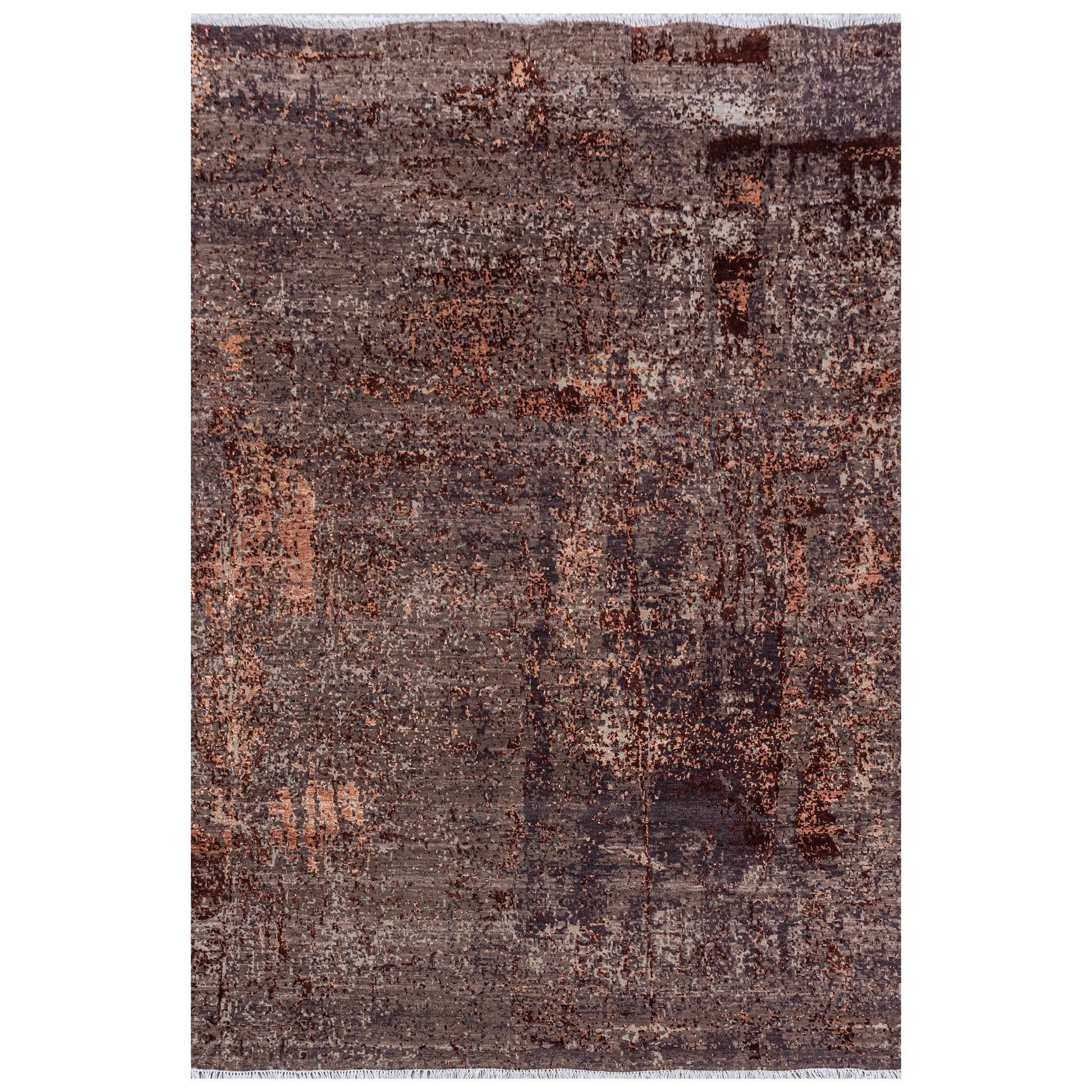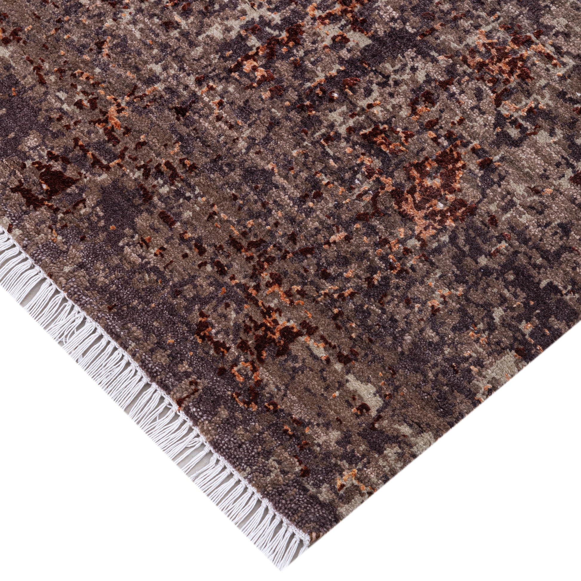Modern Wool & Bamboo Silk Brown Handknotted Rug