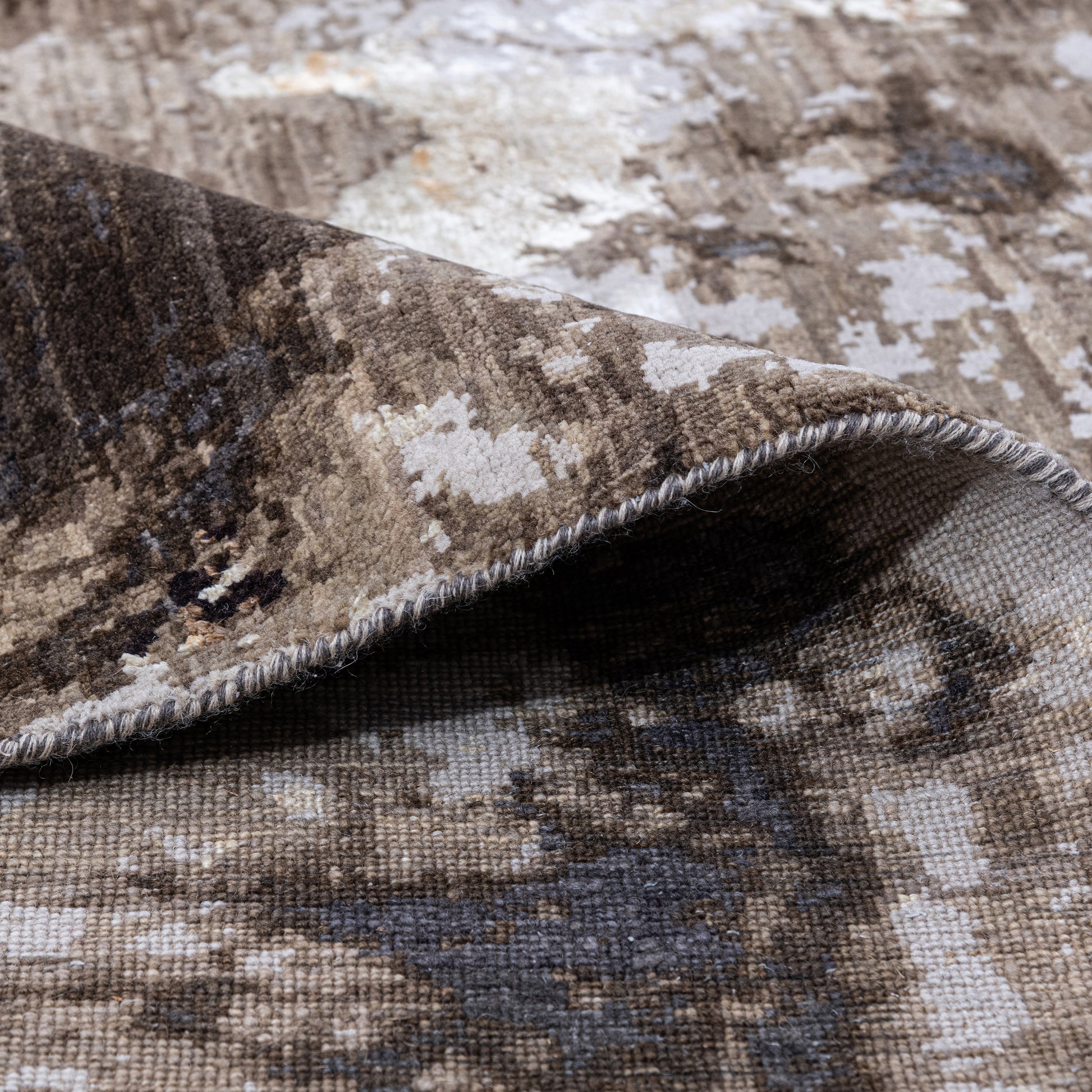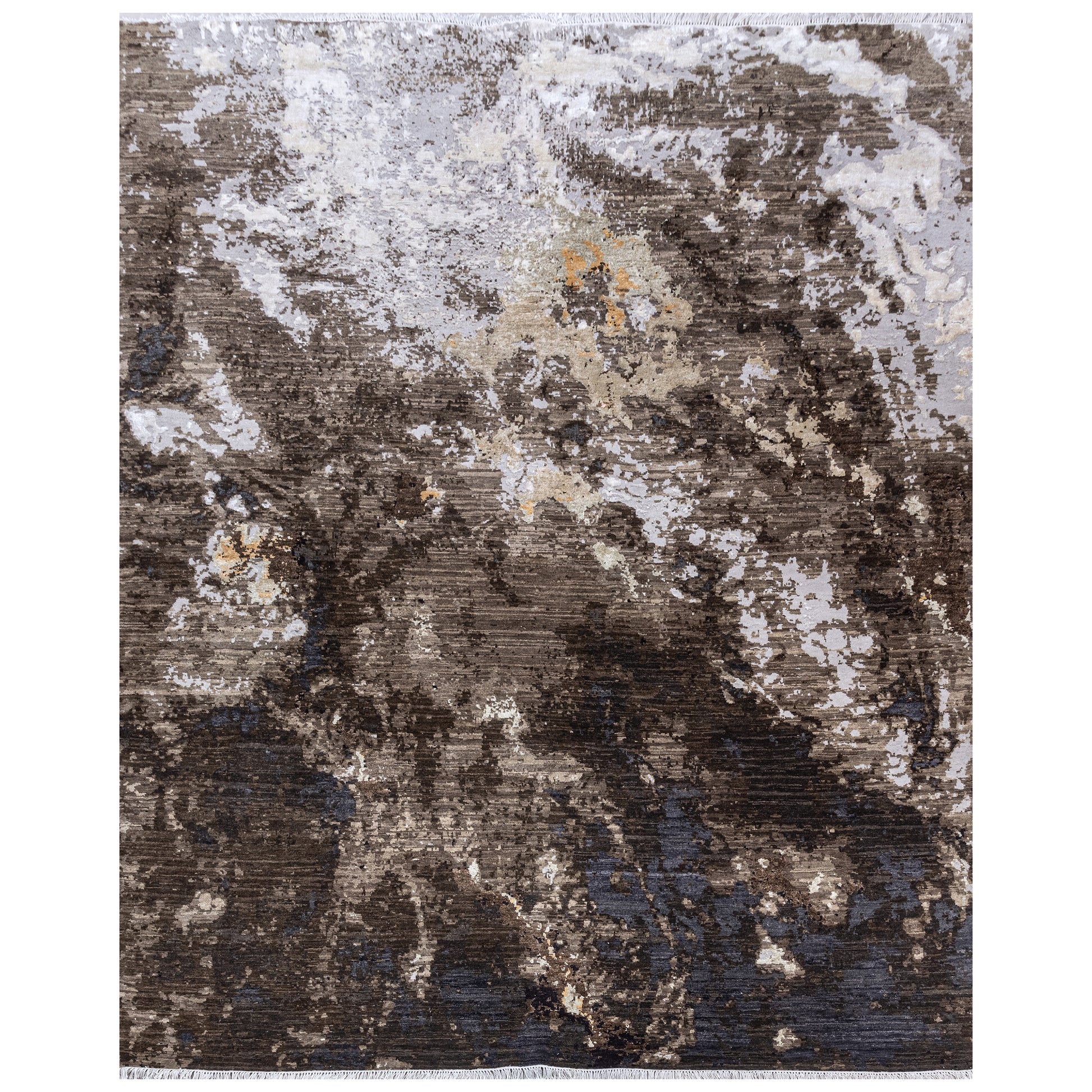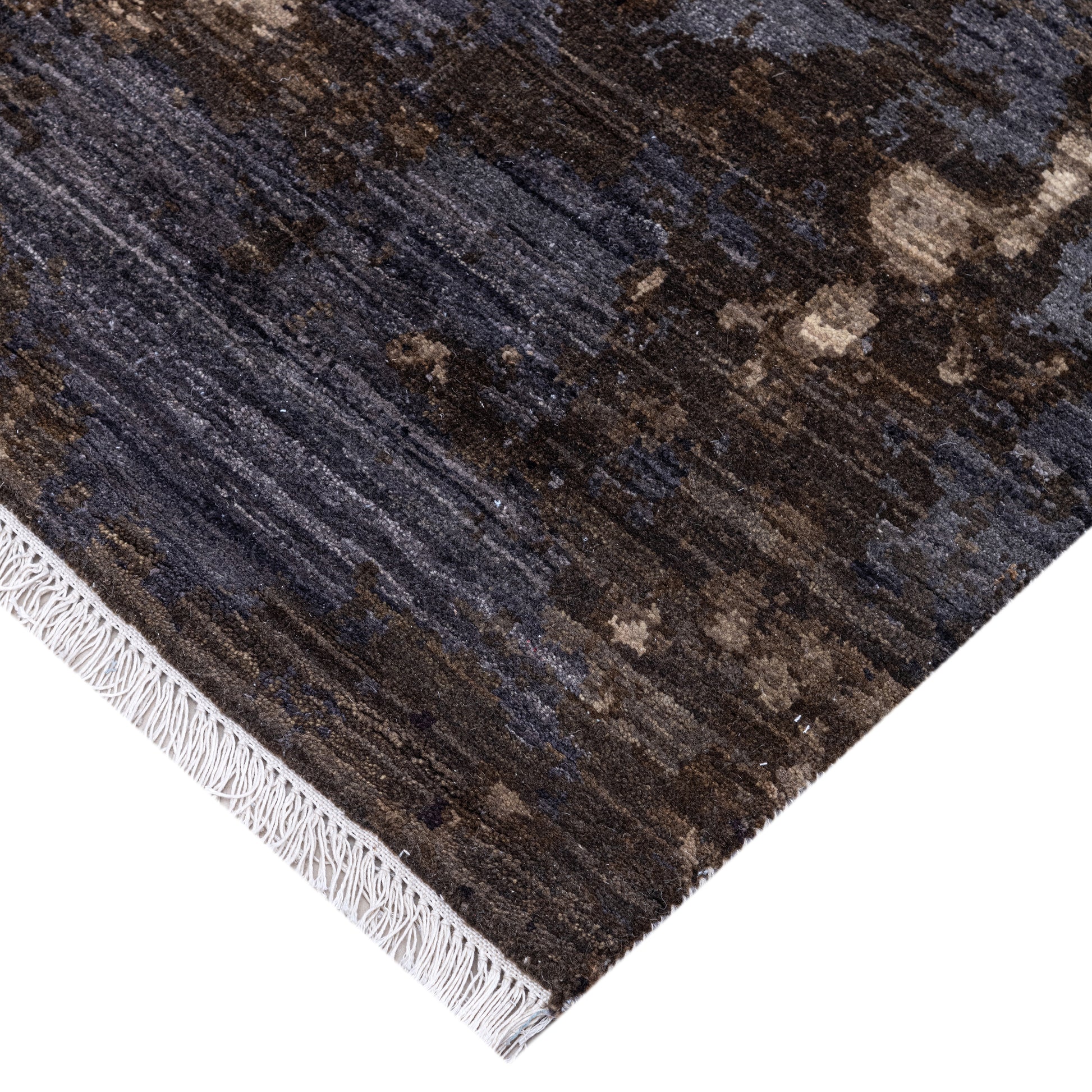 Modern Wool & Bamboo Silk Brown Handknotted Rug