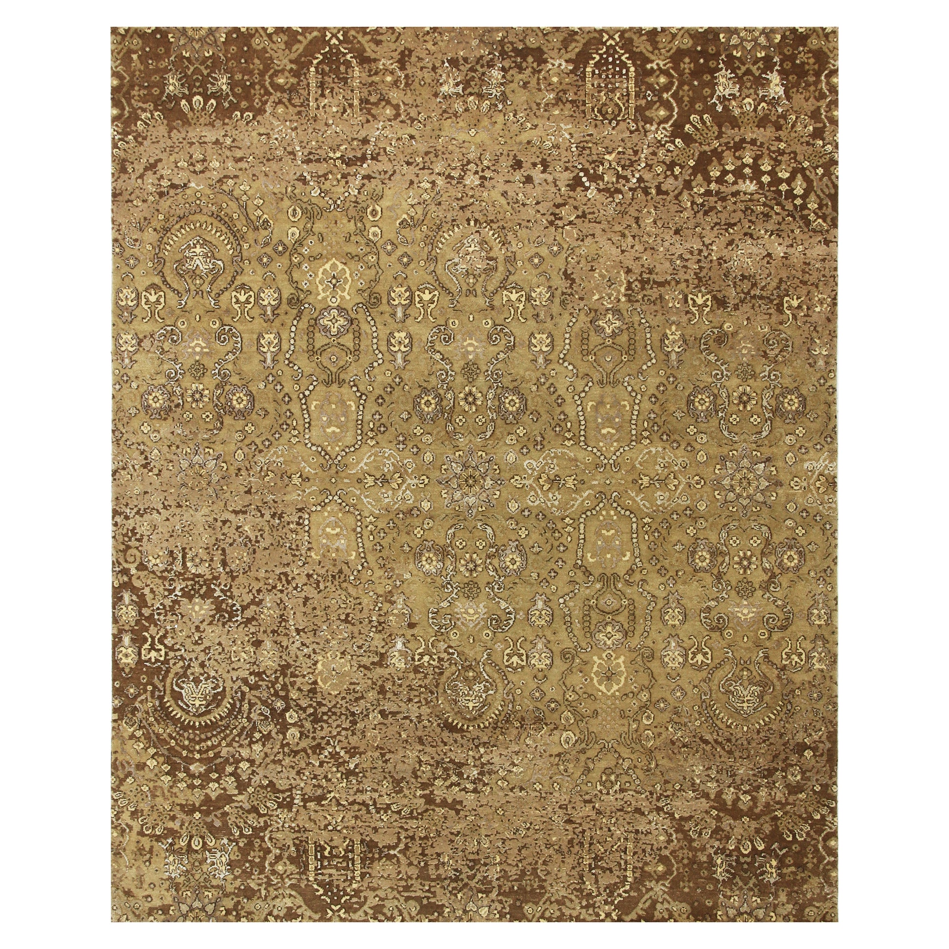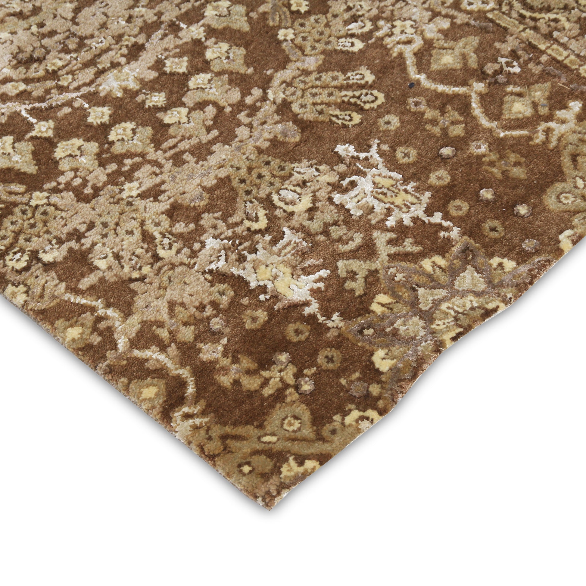 Modern Wool & Bamboo Silk Brown Handknotted Rug