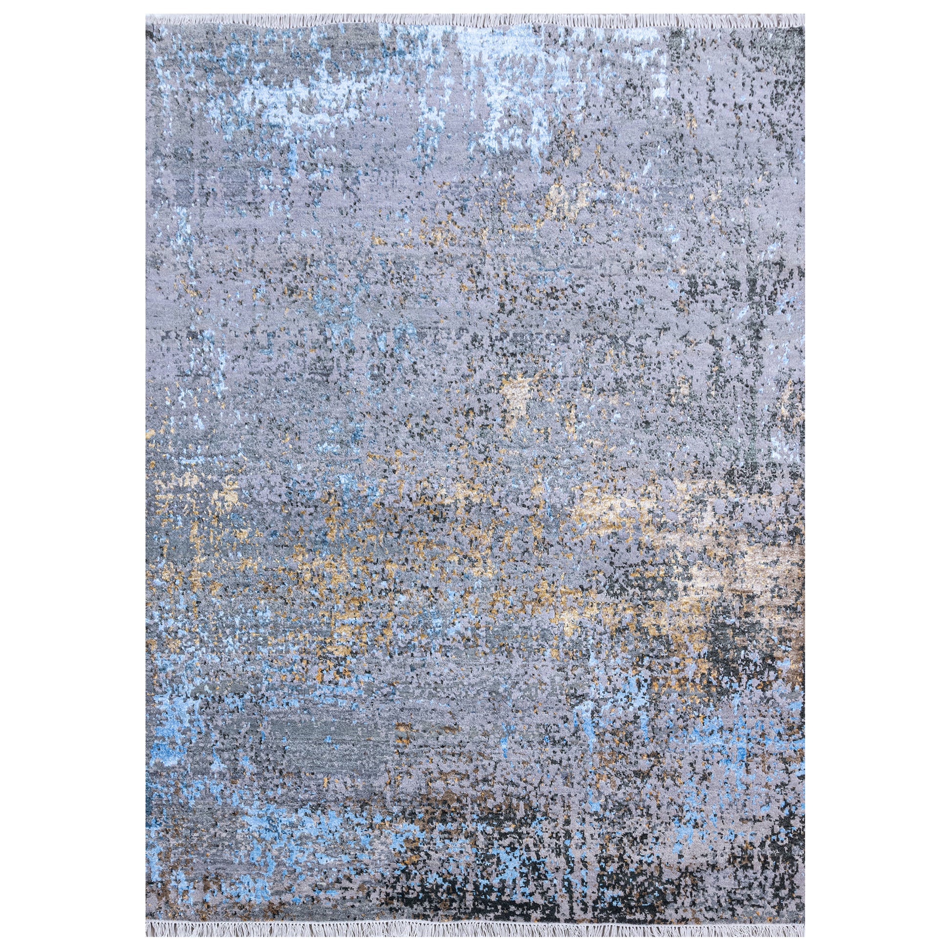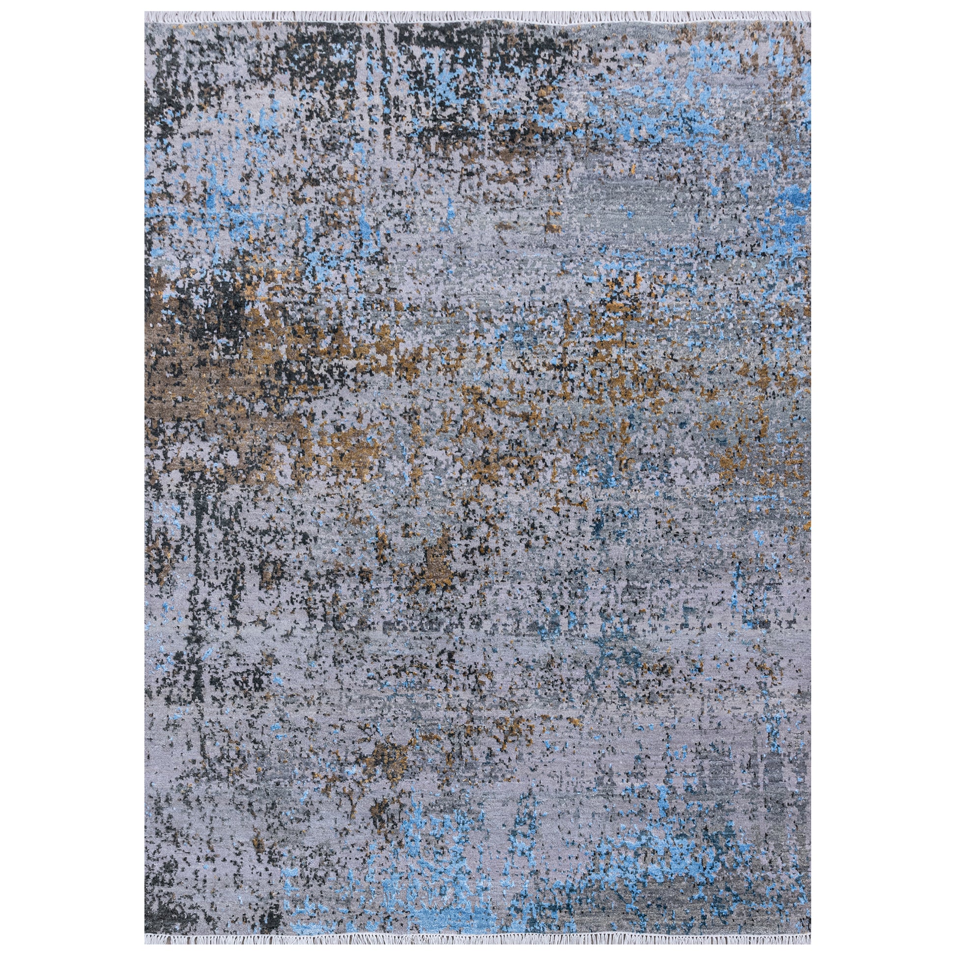 Modern Wool & Bamboo Silk Grey Handknotted Rug
