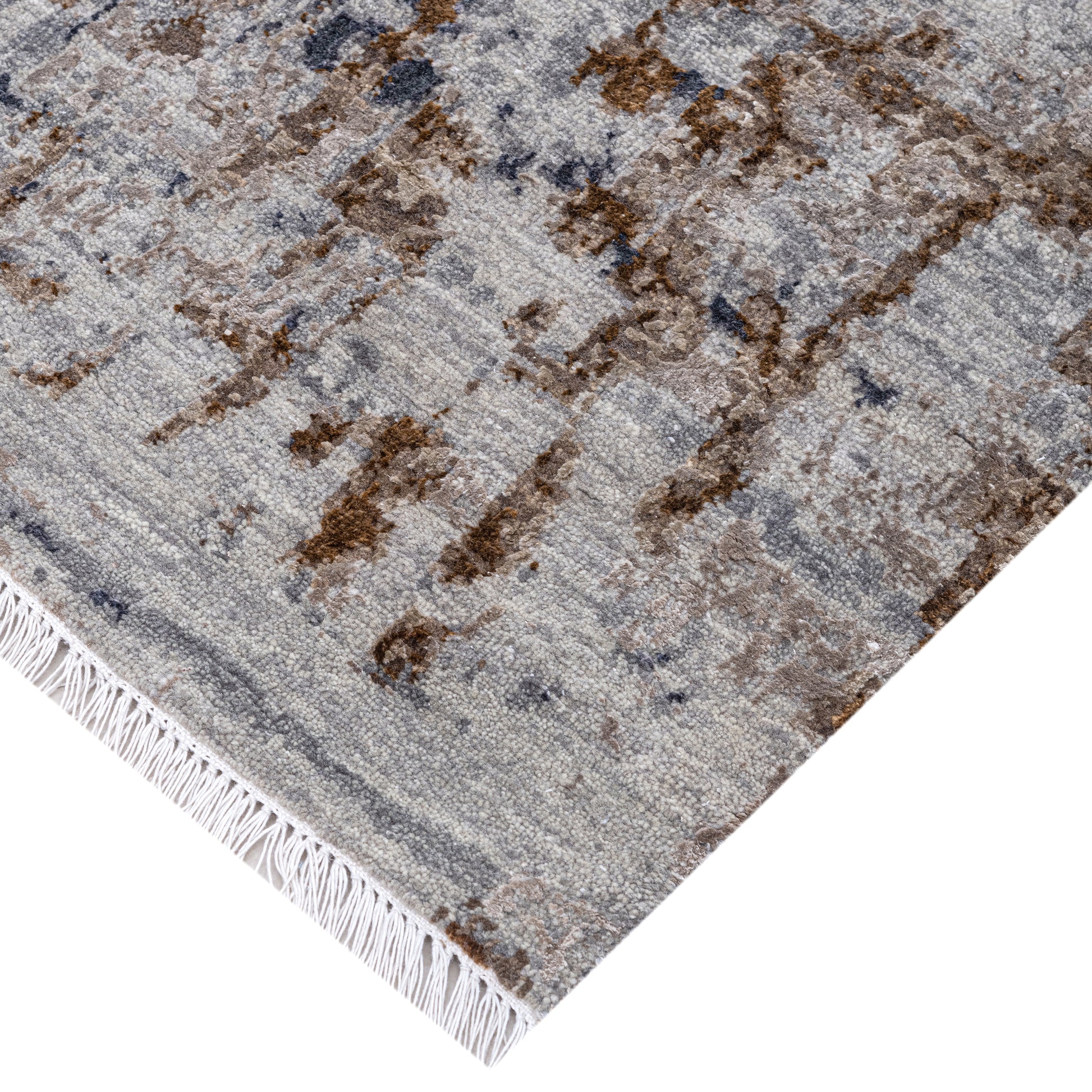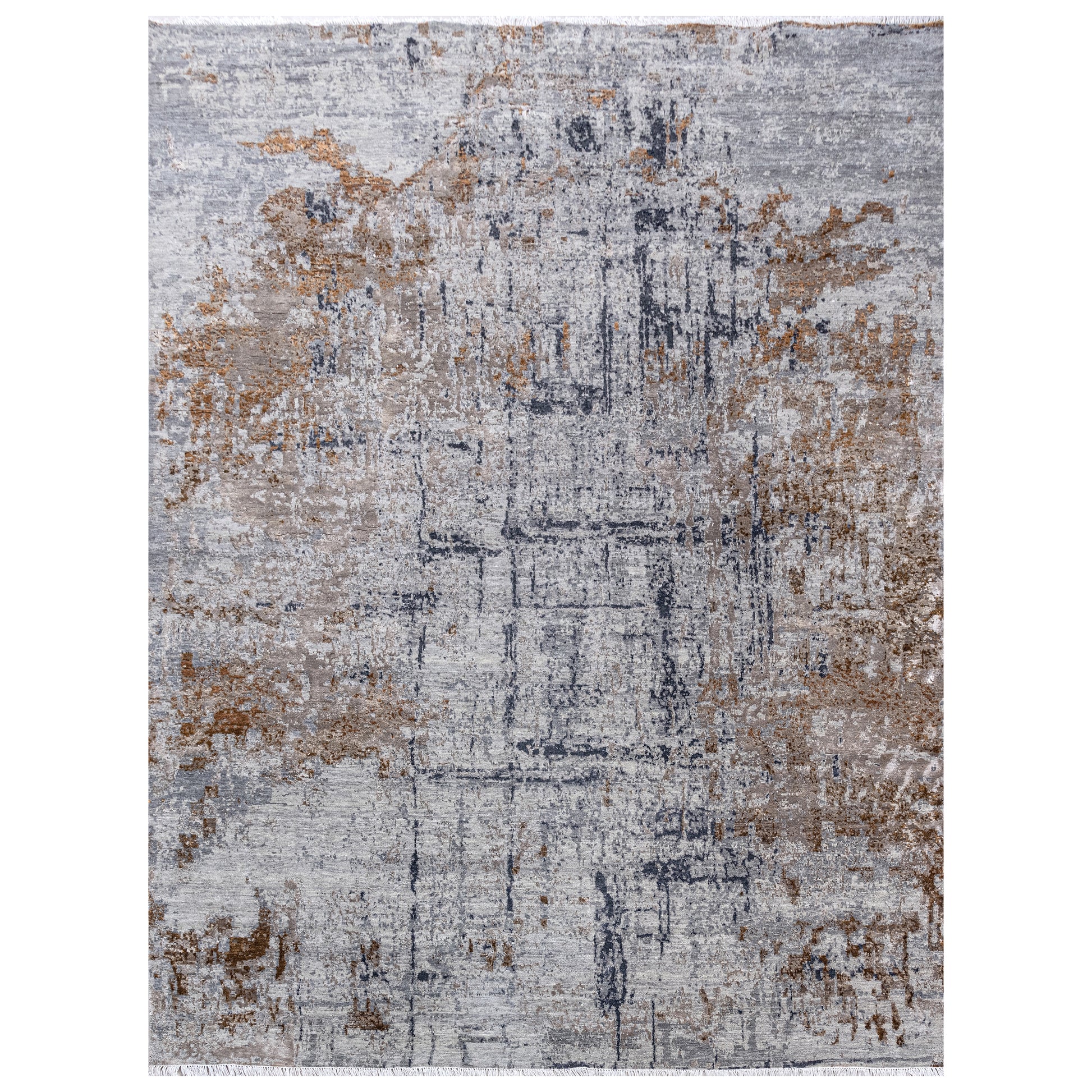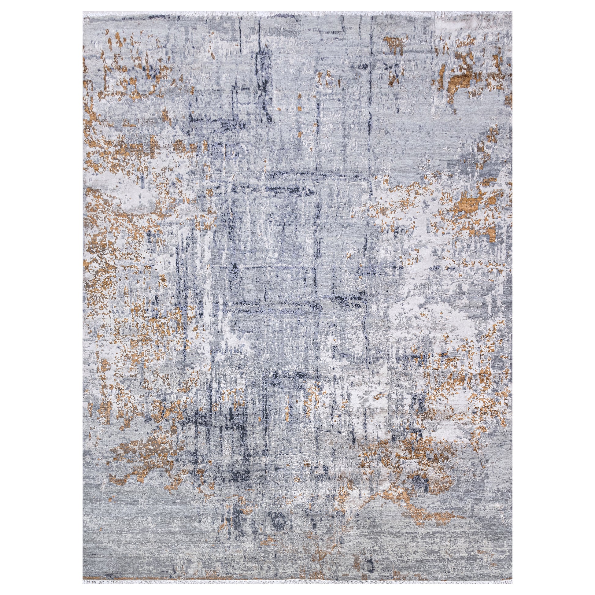 Modern Wool & Bamboo Silk Grey Handknotted Rug