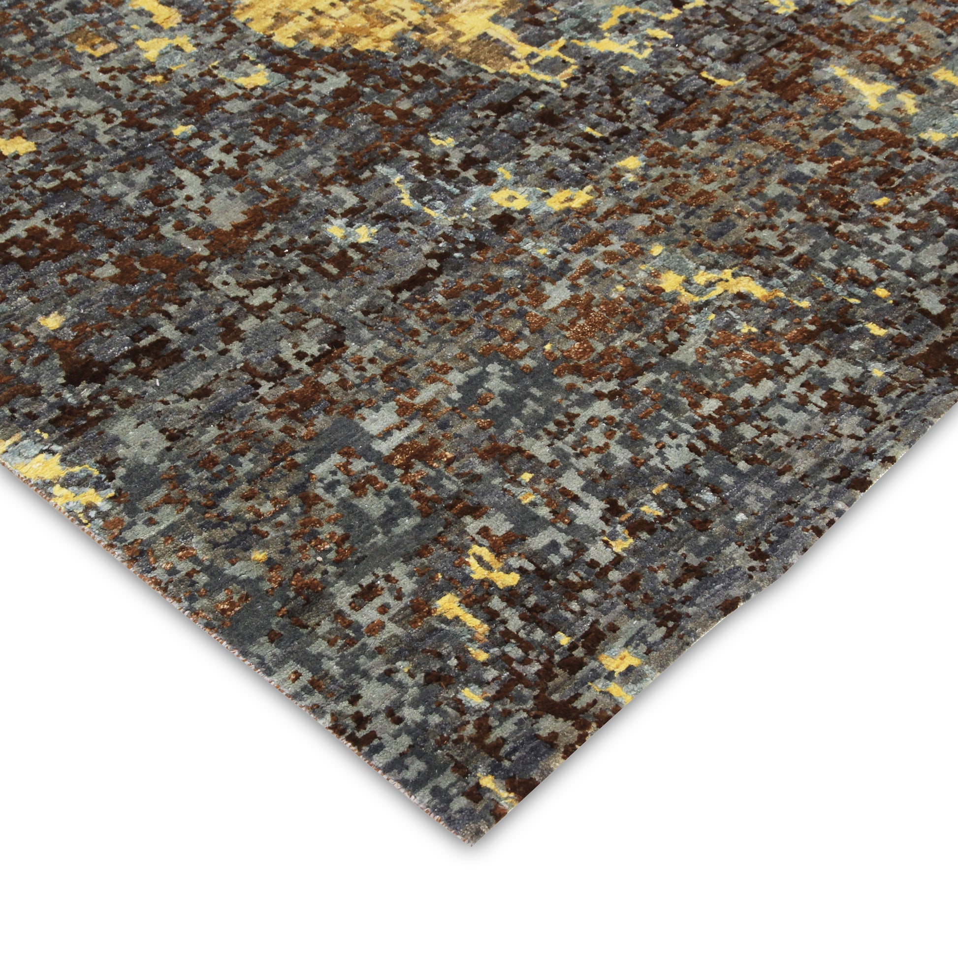 Modern Wool & Bamboo Silk Dark Grey Handknotted Rug