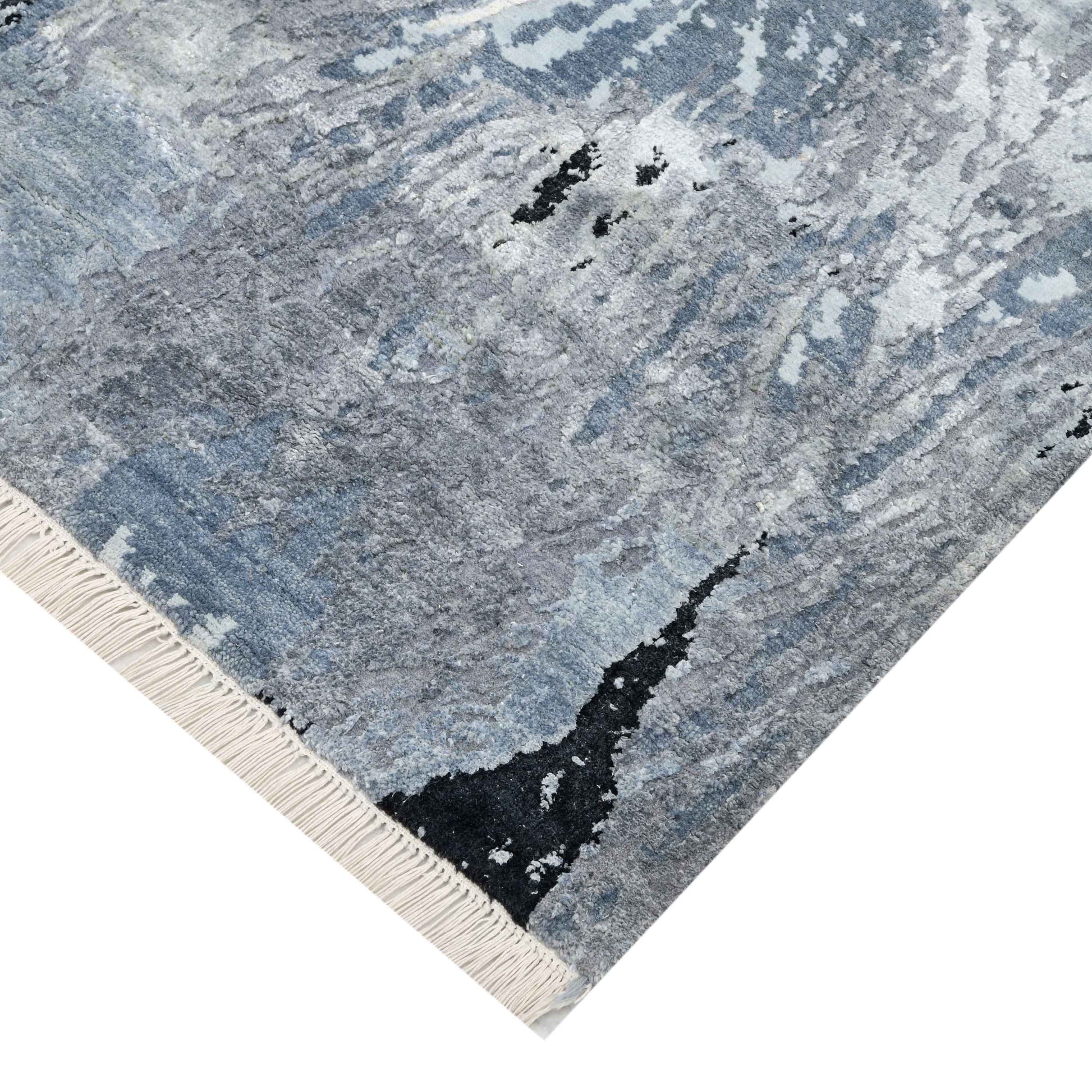 Modern Wool & Silk Light Blue Handknotted Rug