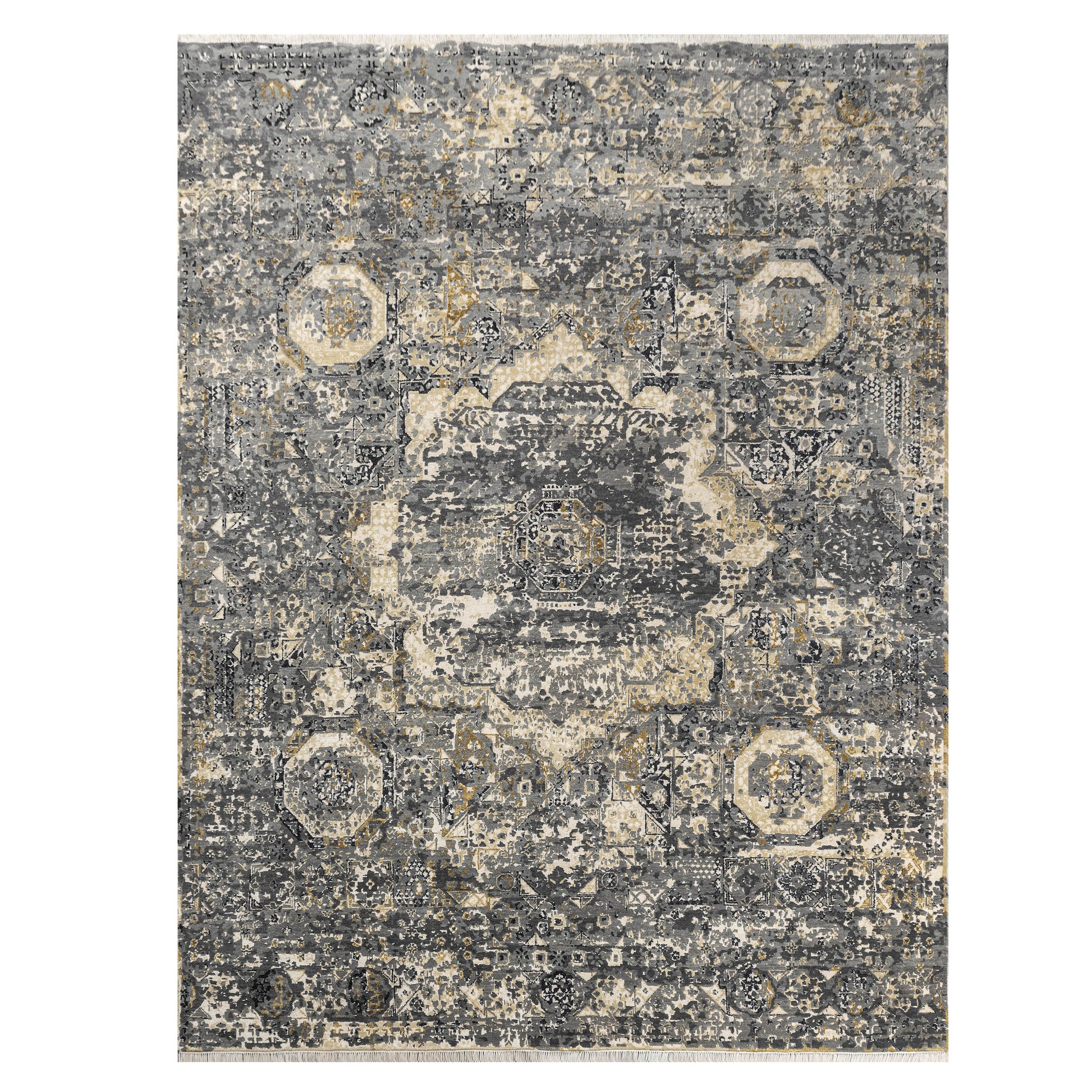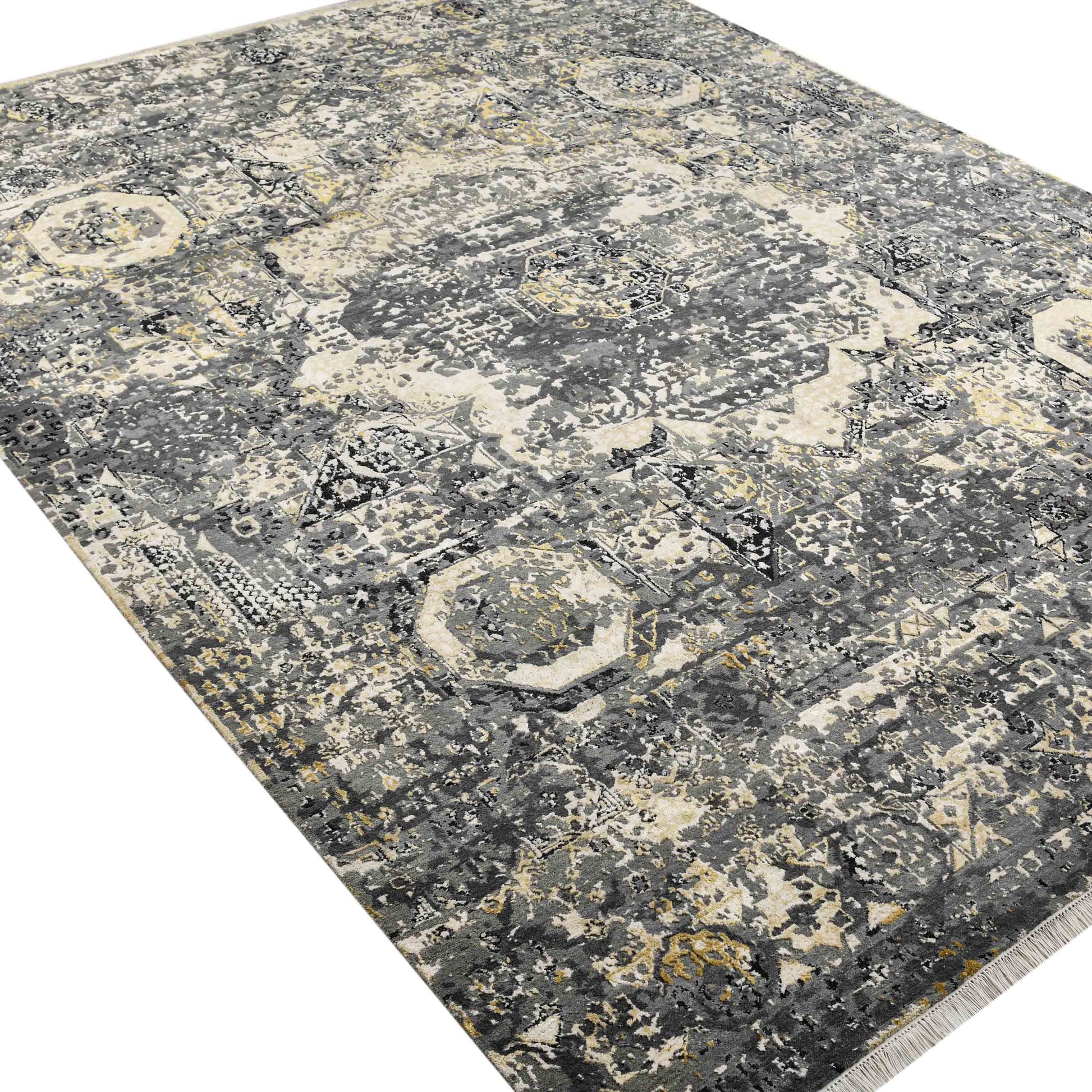 Modern Wool & Silk Grey Handknotted Rug