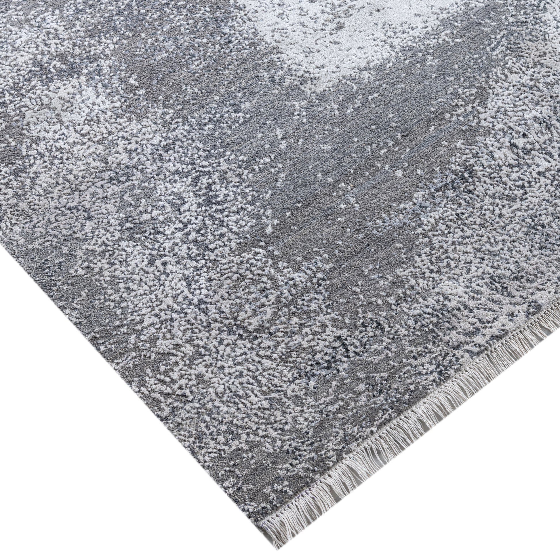 Modern Wool & Silk Grey Handknotted Rug