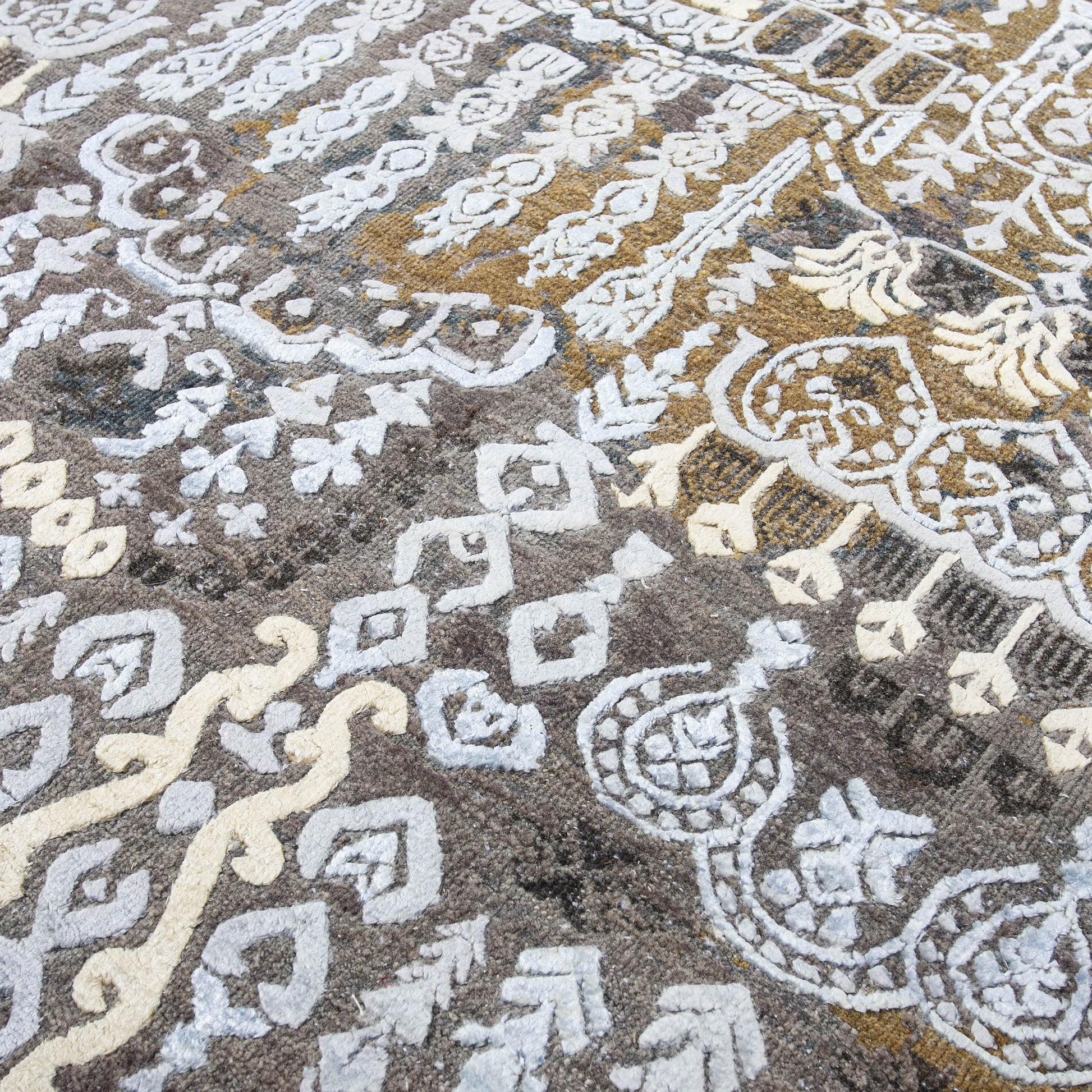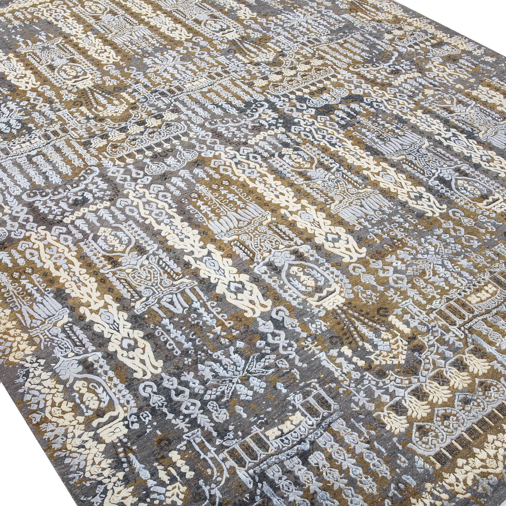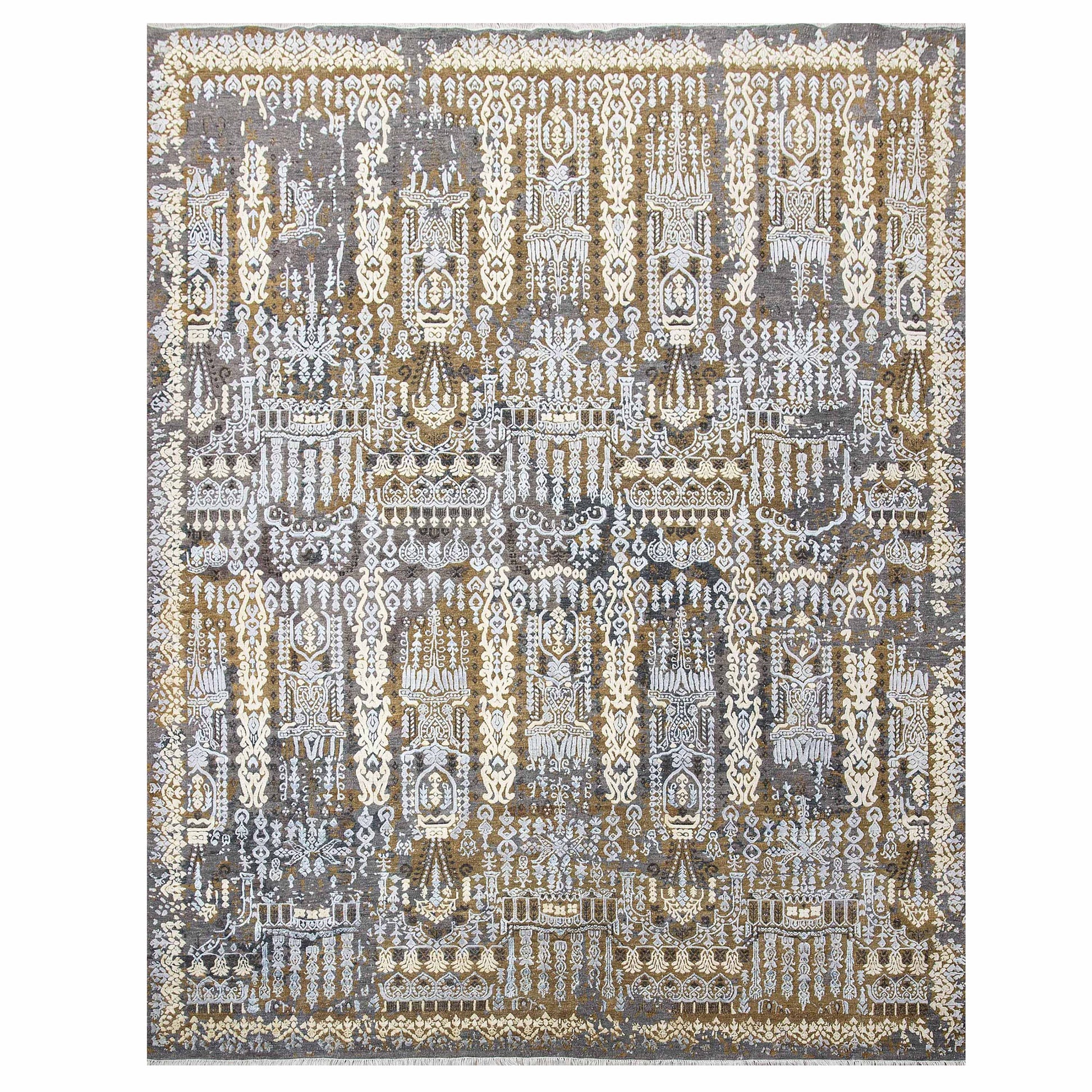 Modern Wool & Silk Grey Handknotted Rug