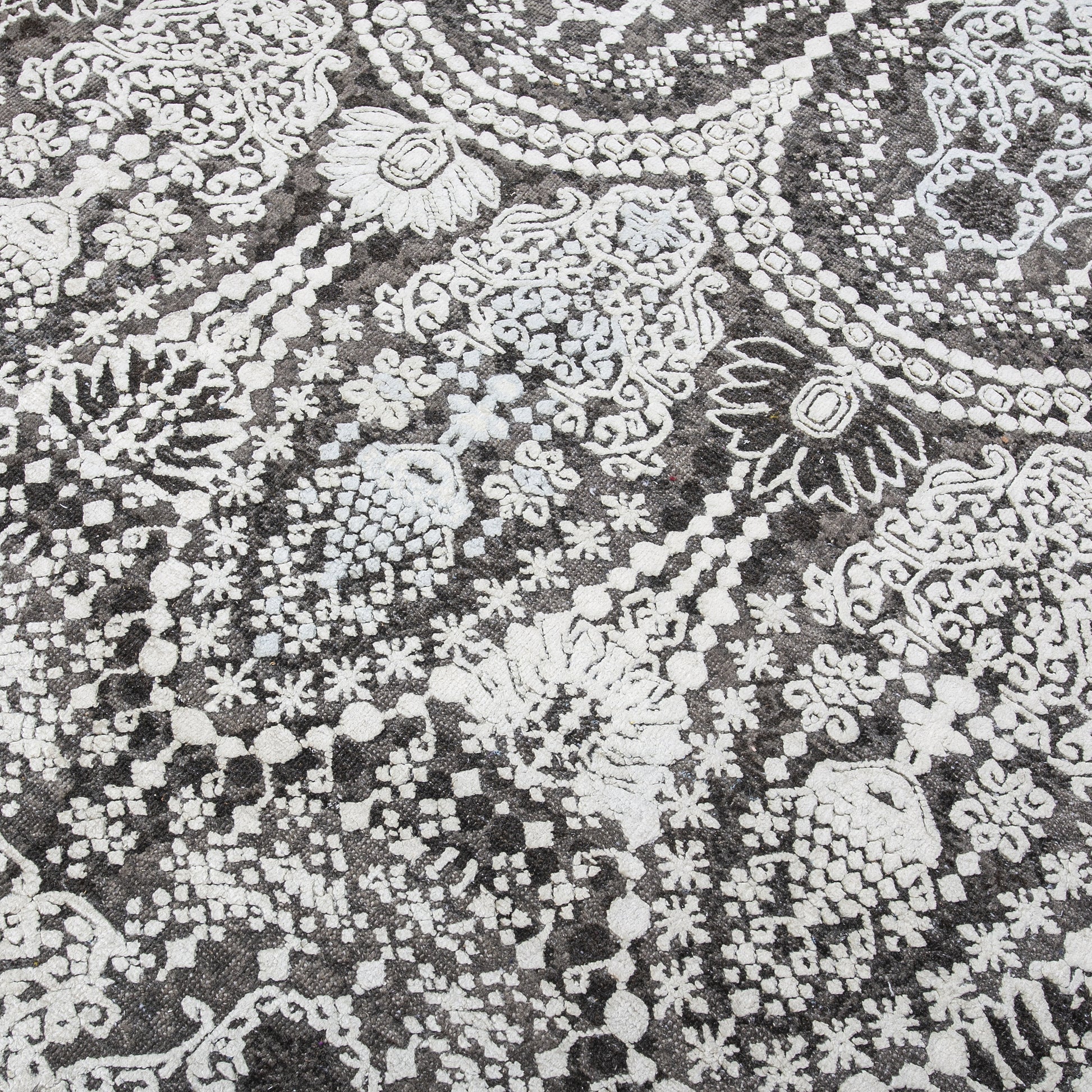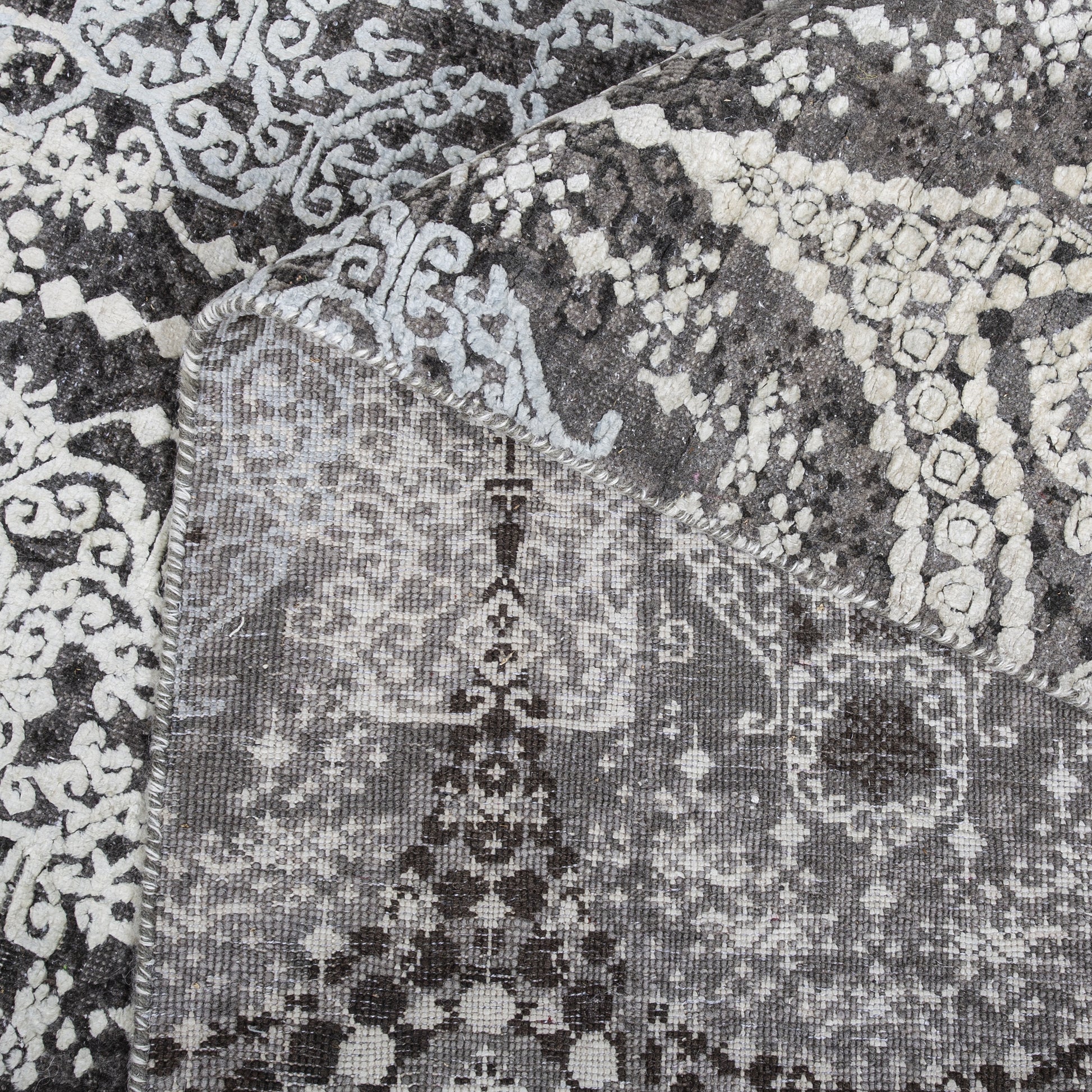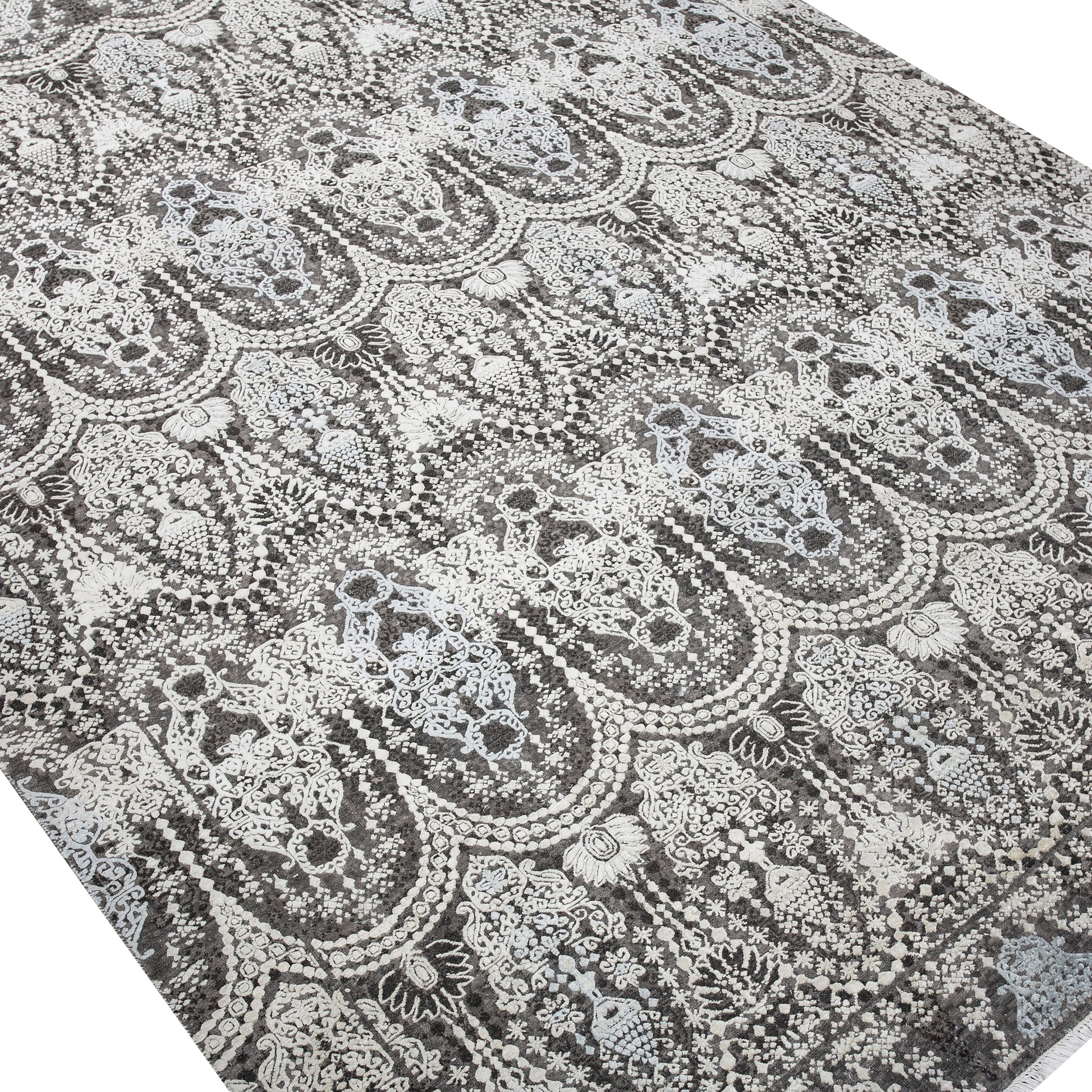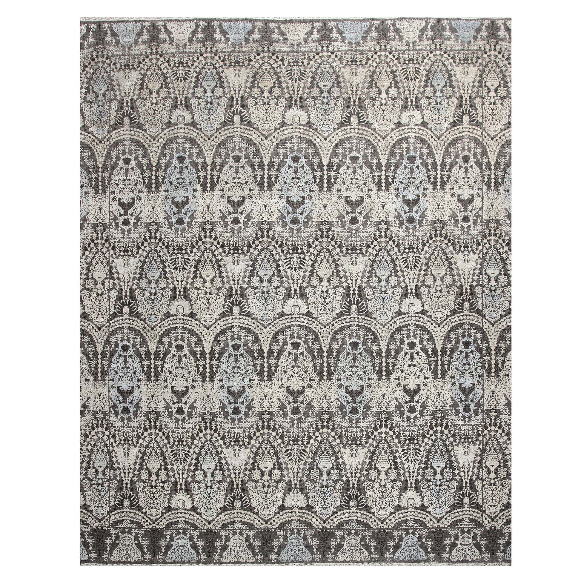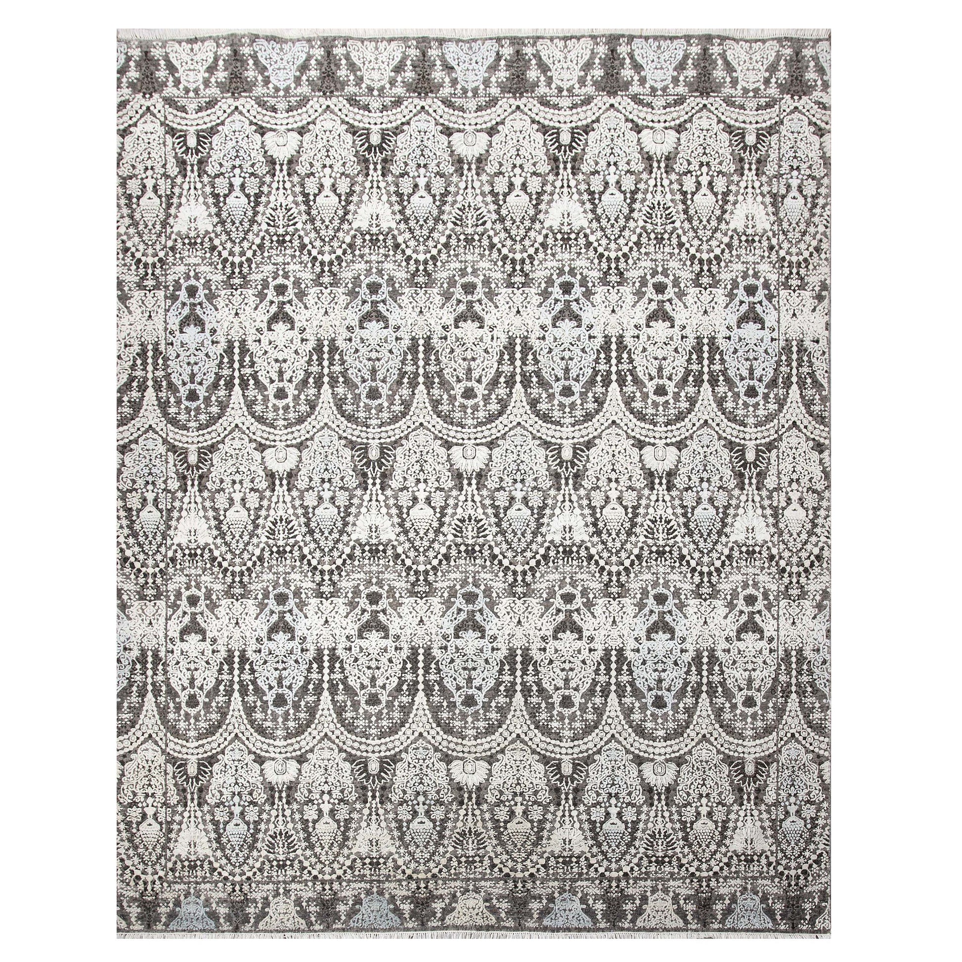 Modern Wool & Silk Grey Handknotted Rug