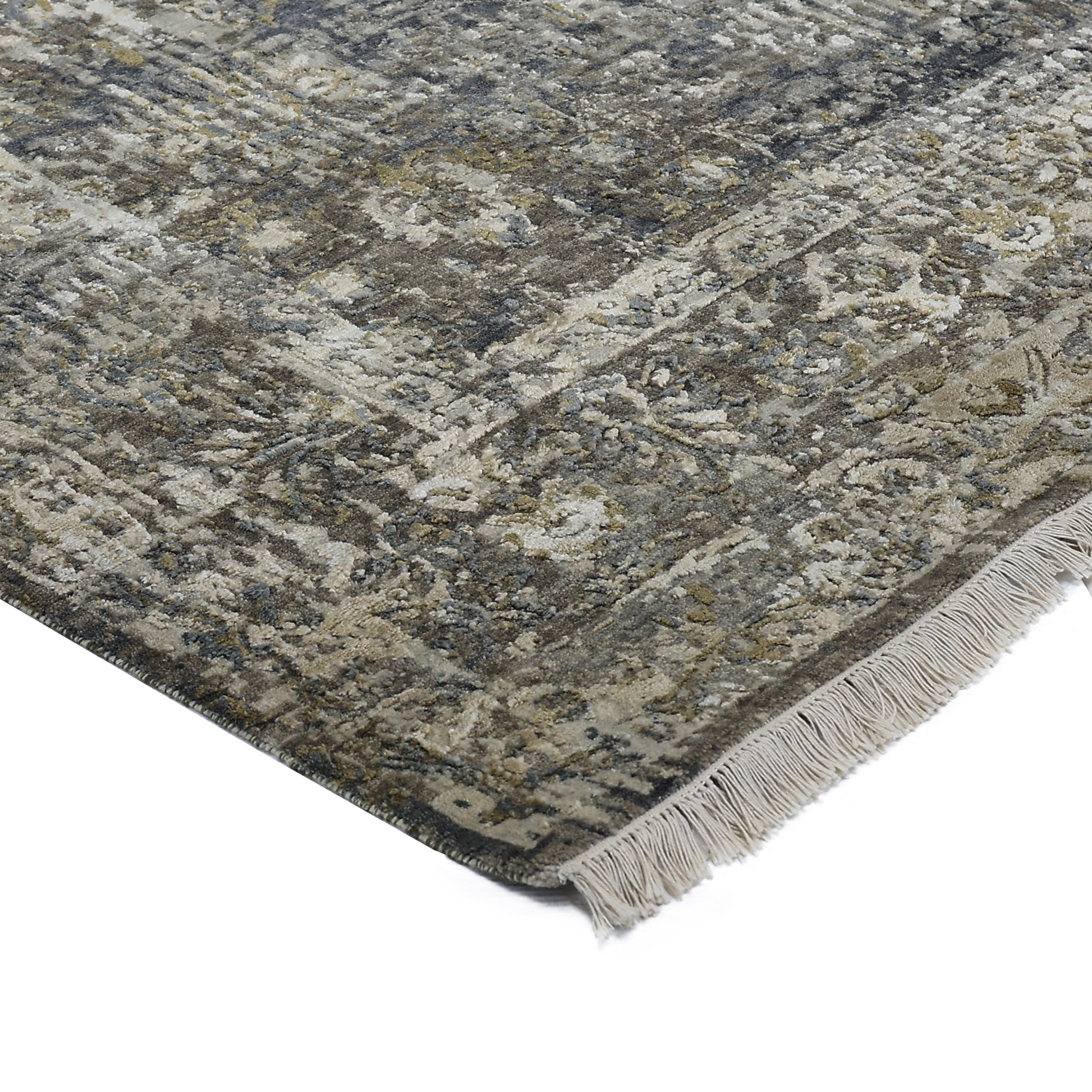 Modern Wool & Silk Grey Handknotted Rug