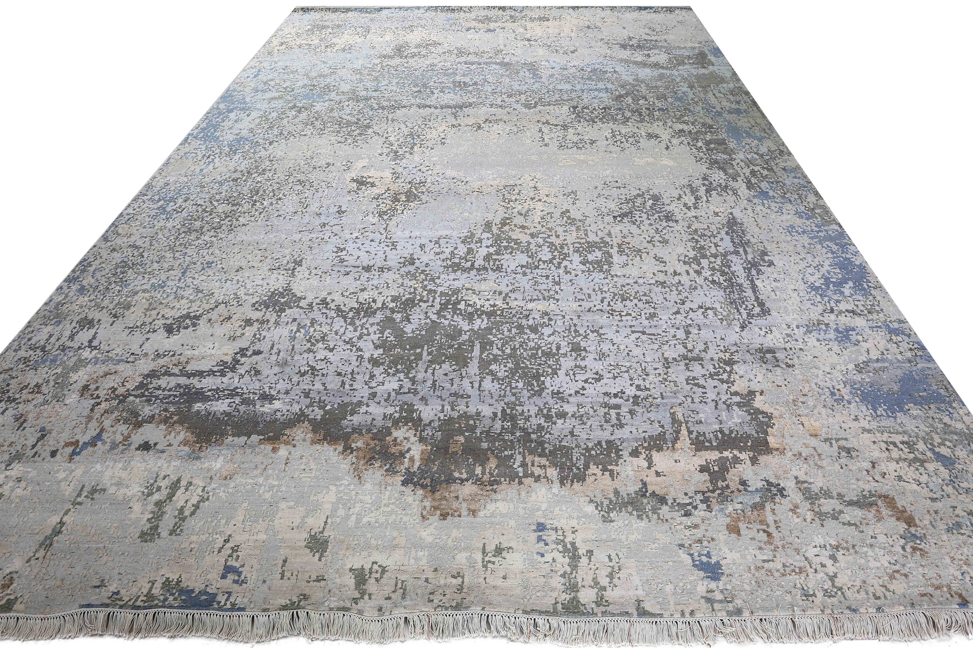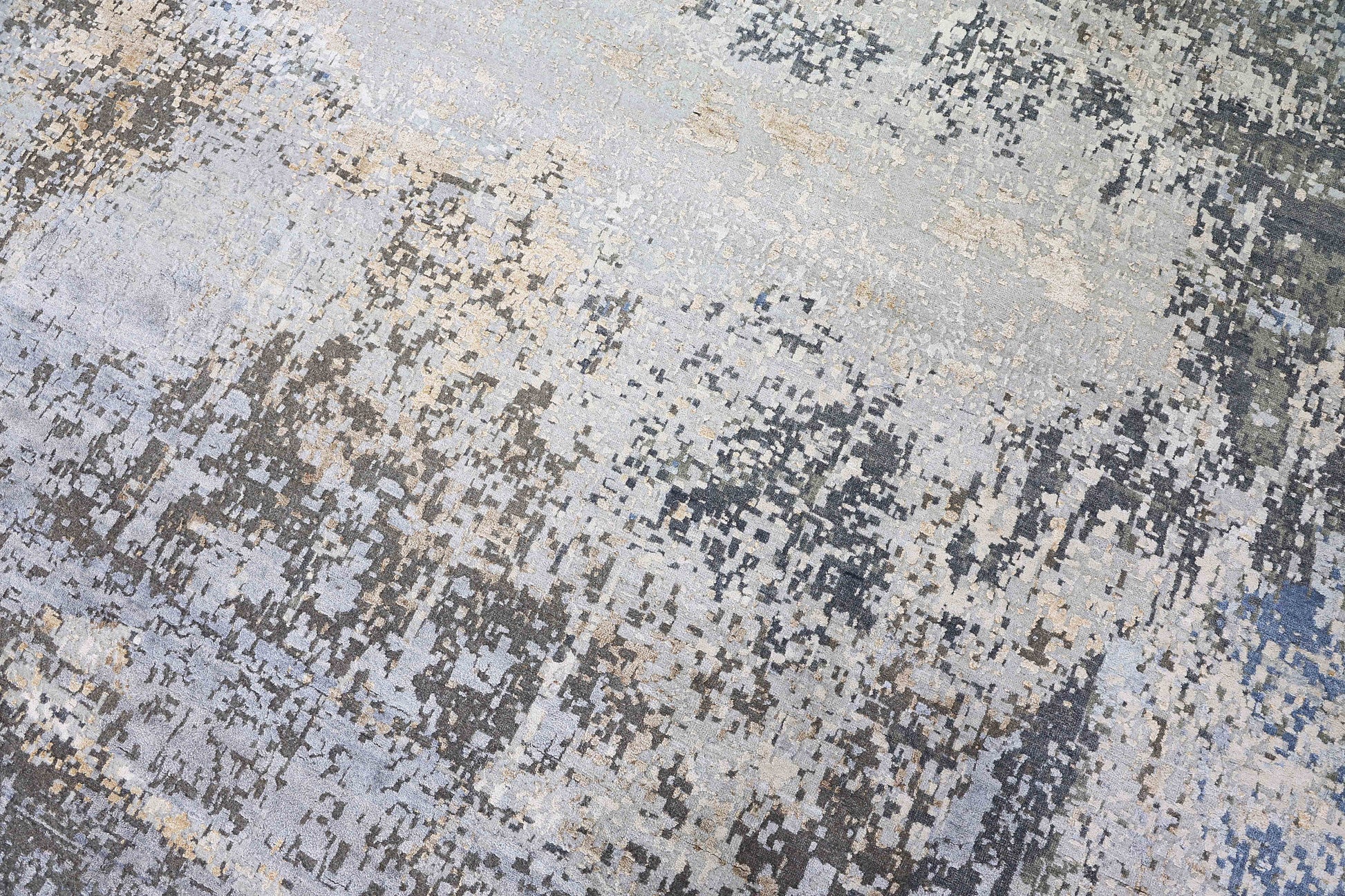 Modern Wool & Silk Grey Handknotted Rug