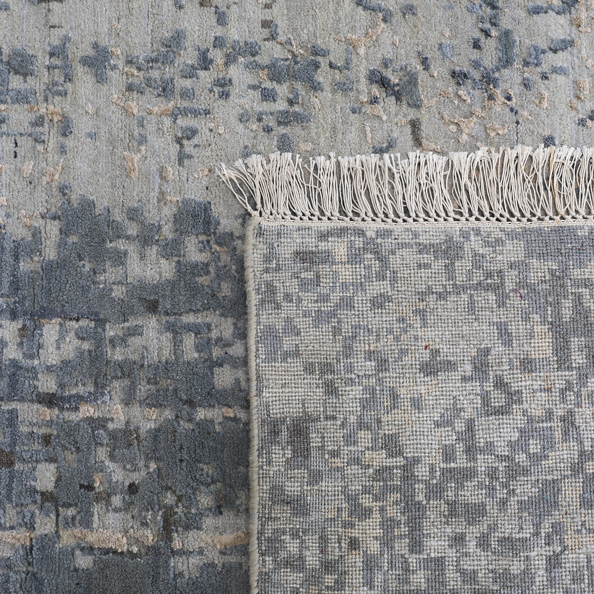 Modern Wool & Silk Grey Handknotted Rug