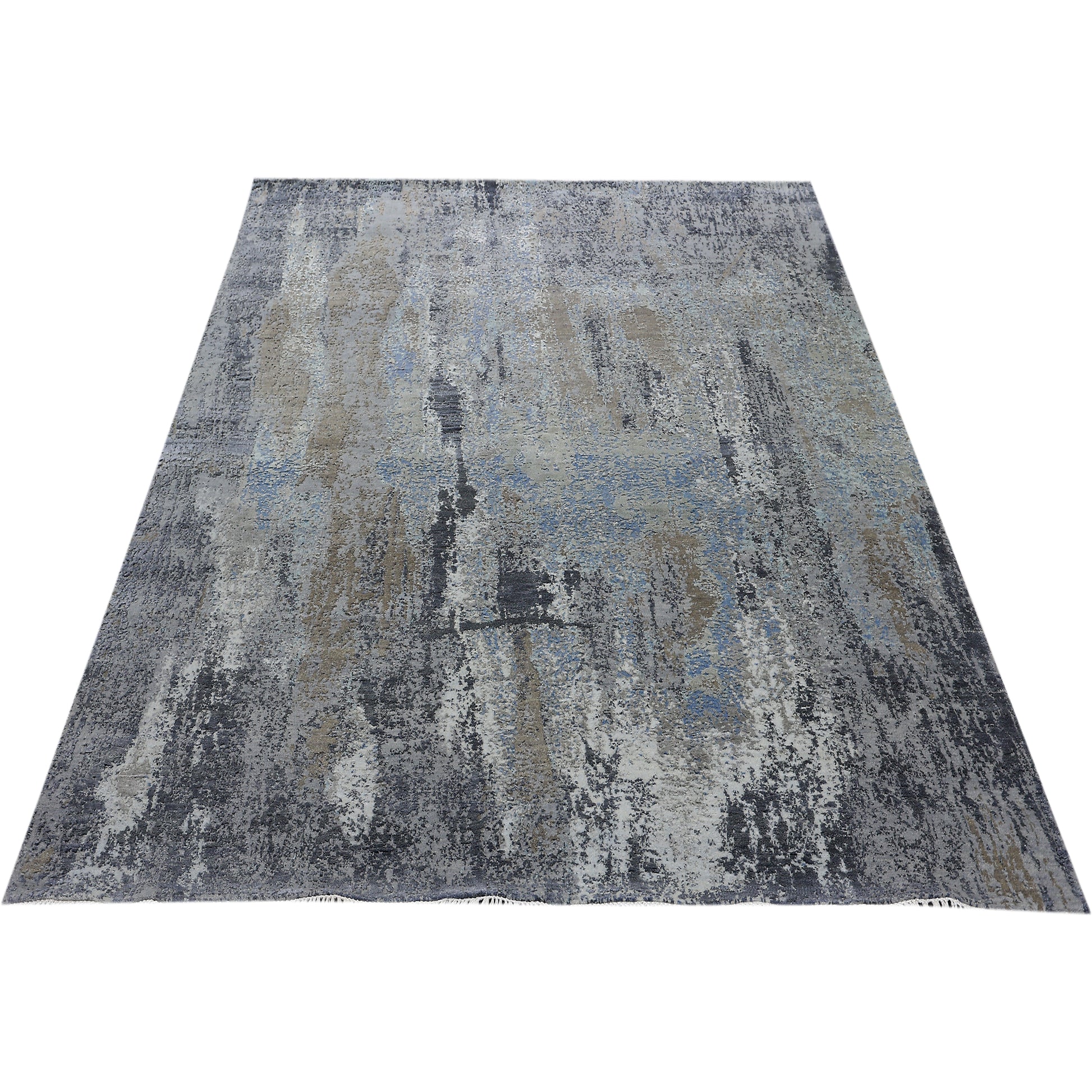 Modern Wool & Silk Grey Handknotted Rug