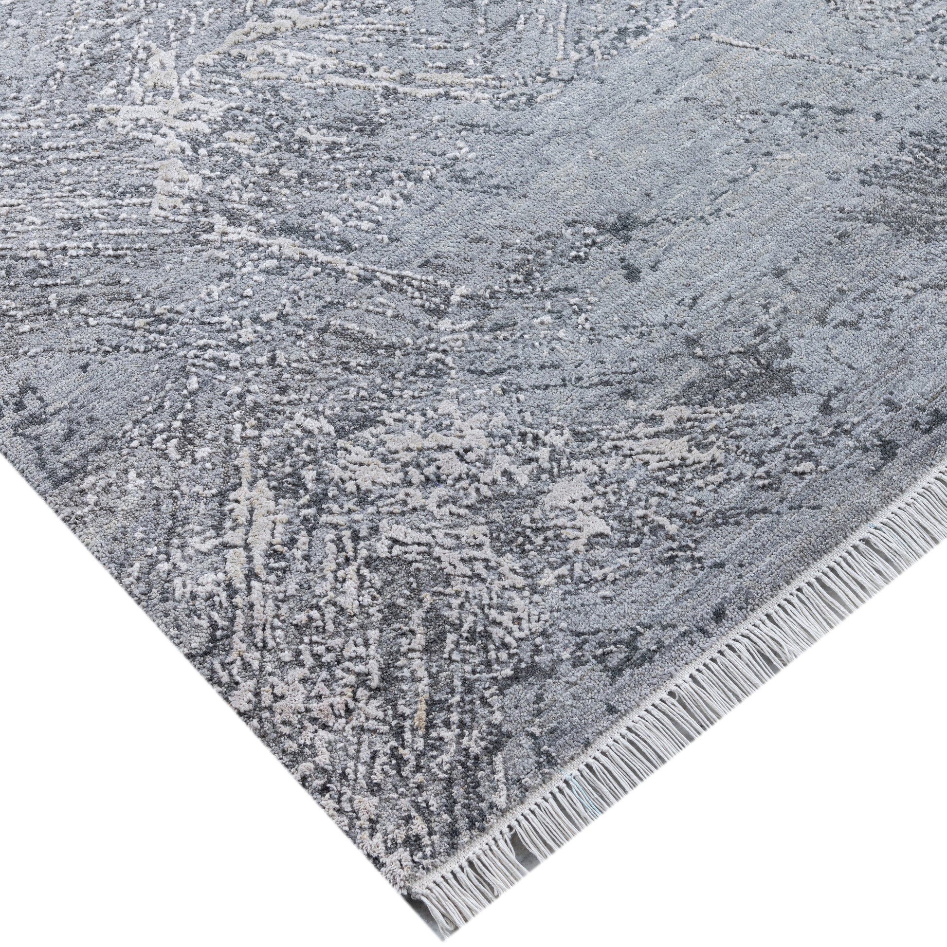 Modern Wool & Silk Grey Handknotted Rug