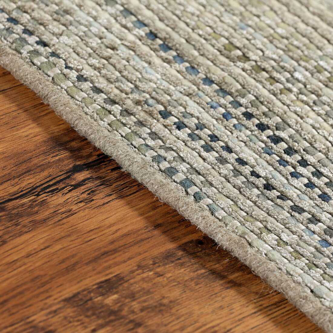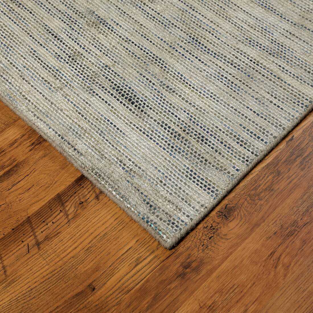 The Noir Handloom Rug, crafted from wool and viscose, features eye-catching space-dyed accent yarns that elevate monotone hues with depth and richness. Its striking design adds exquisite grandeur to your living room, enhancing both style and sophistication with a luxurious, bold touch.