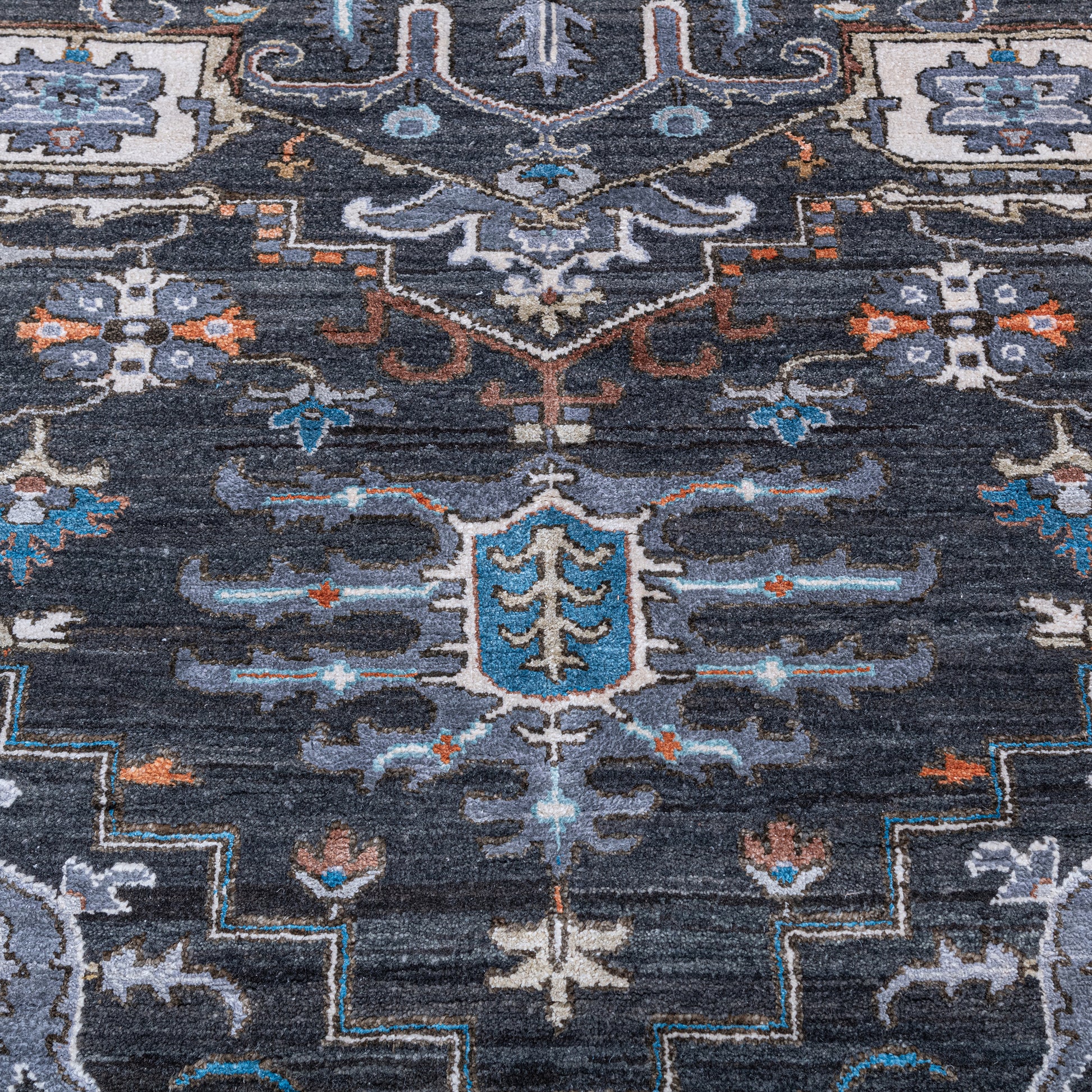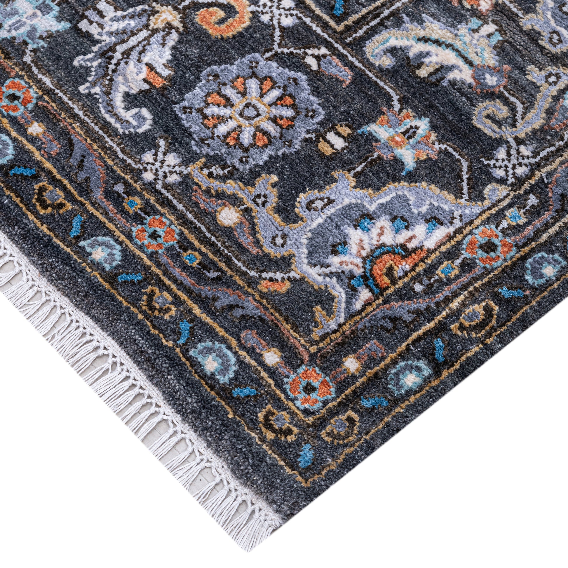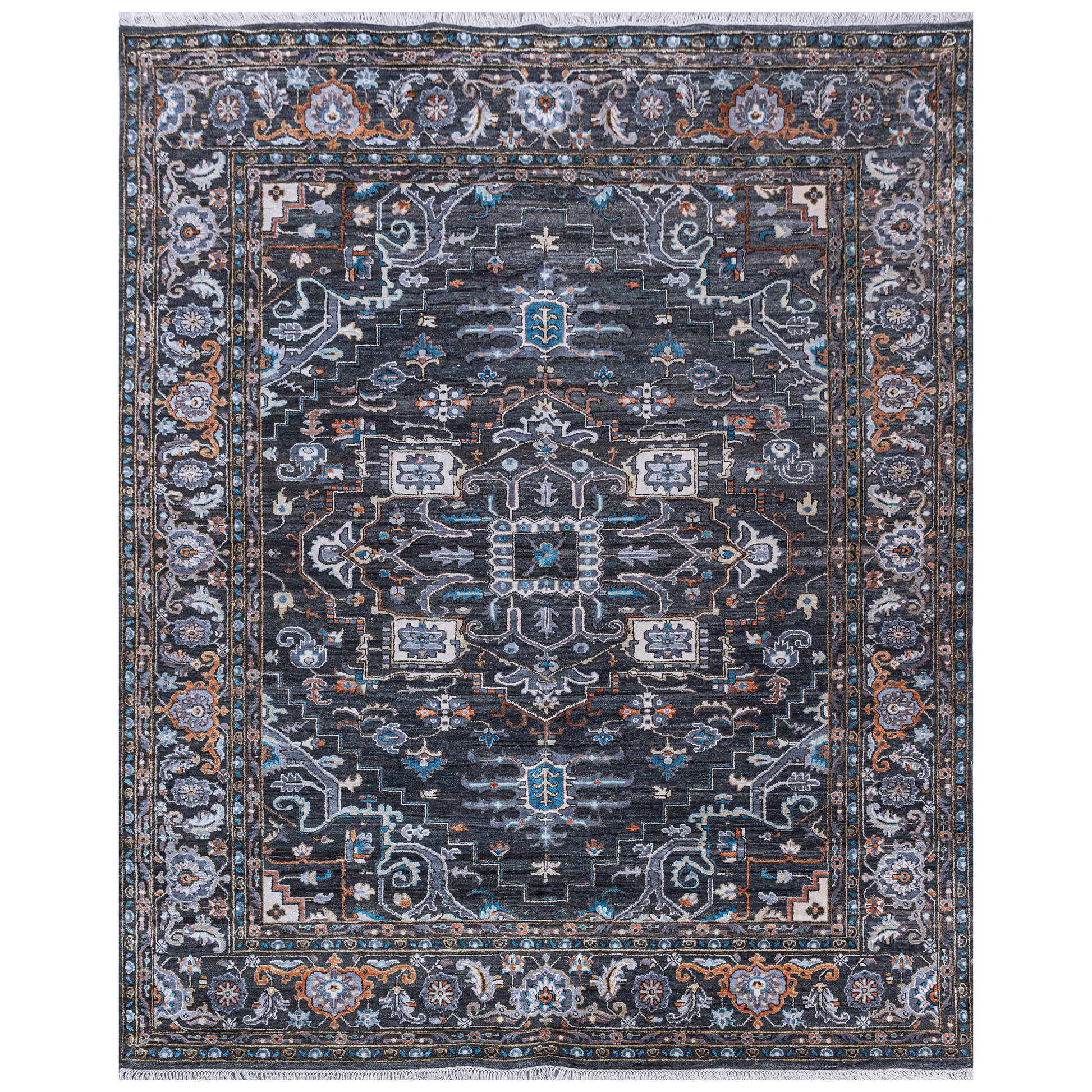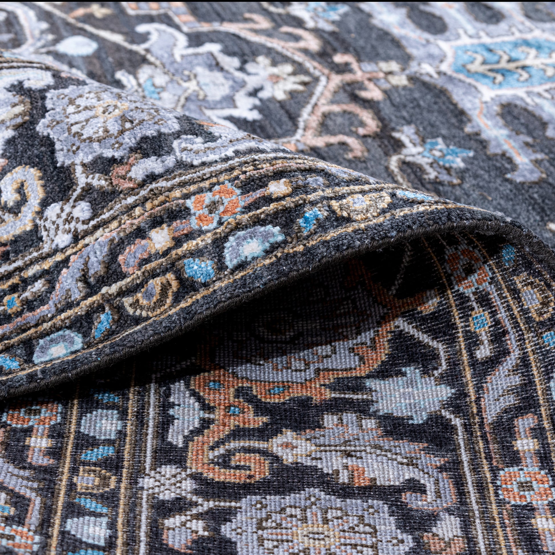 Traditional Wool & Bamboo Dark Grey Handknotted Rug