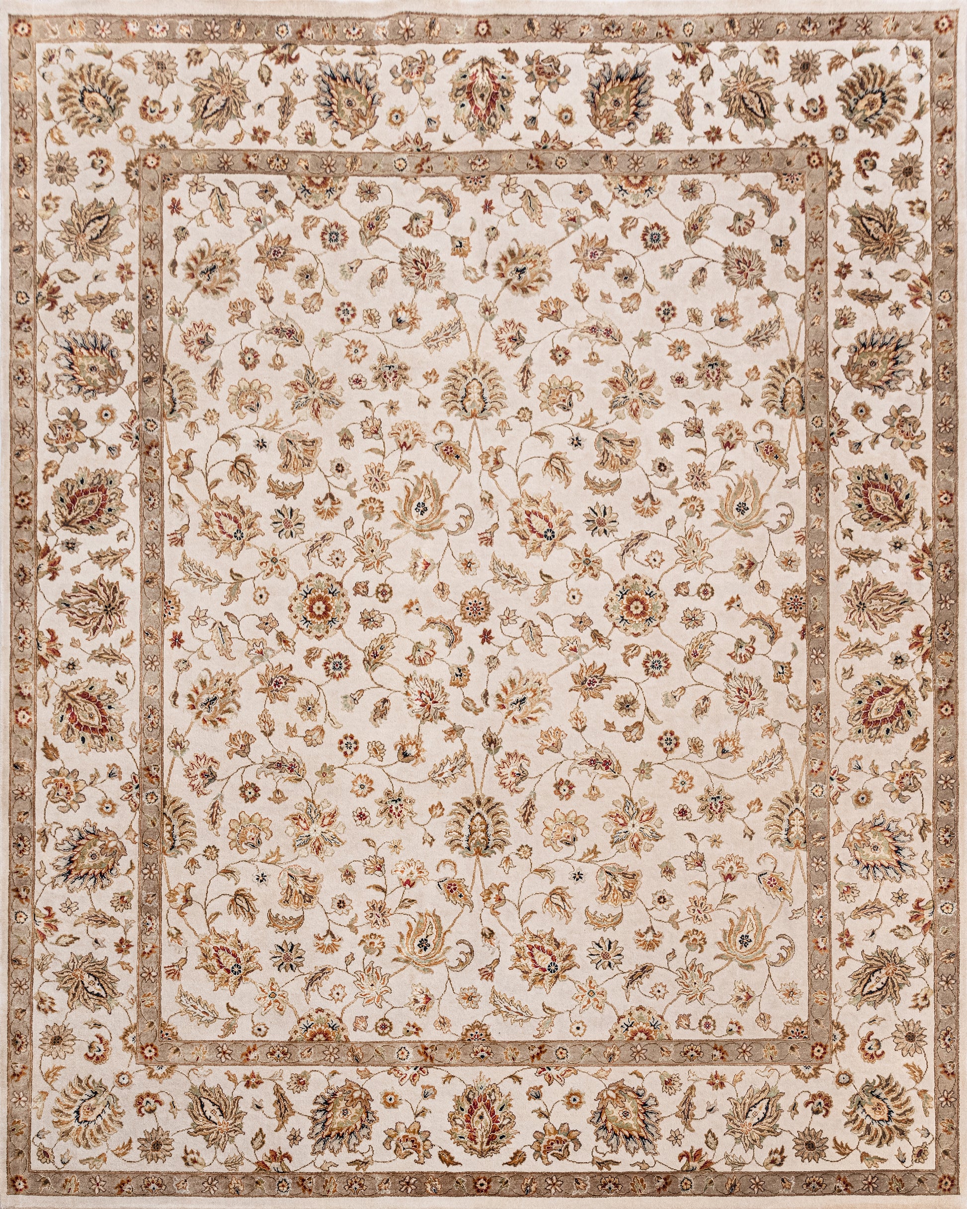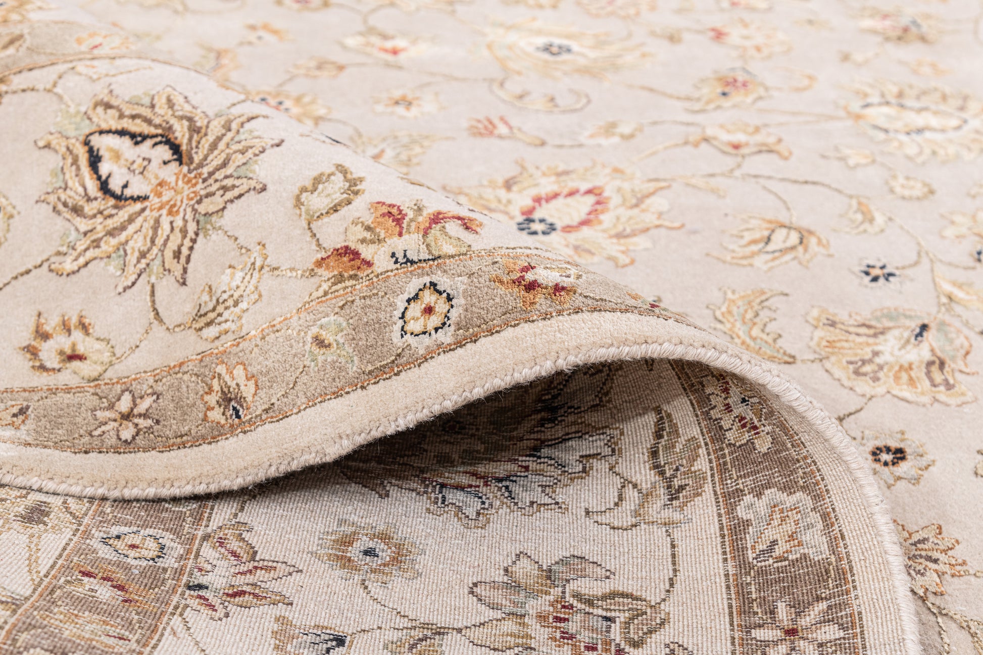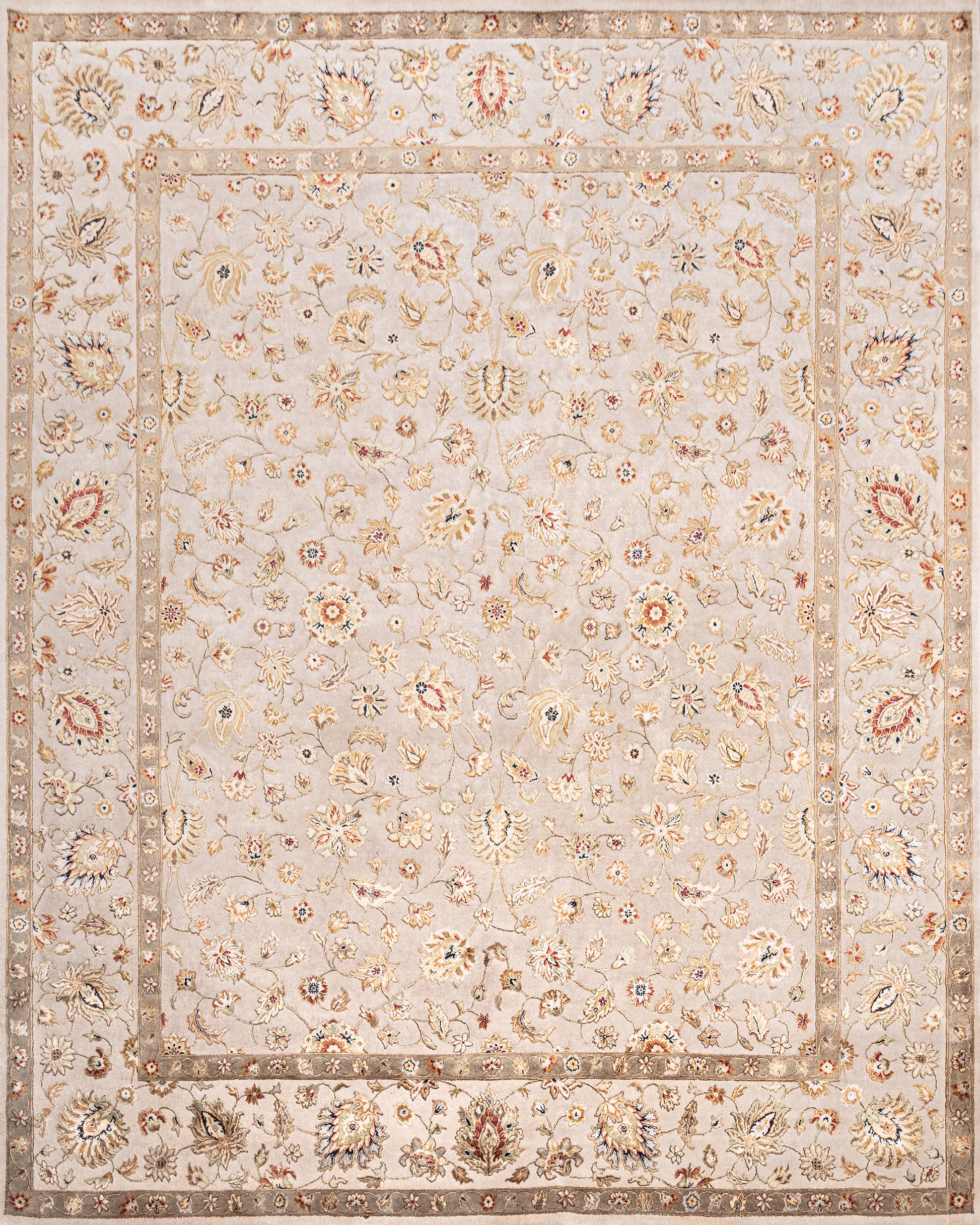 Traditional Wool & Silk Beige Handknotted Rug