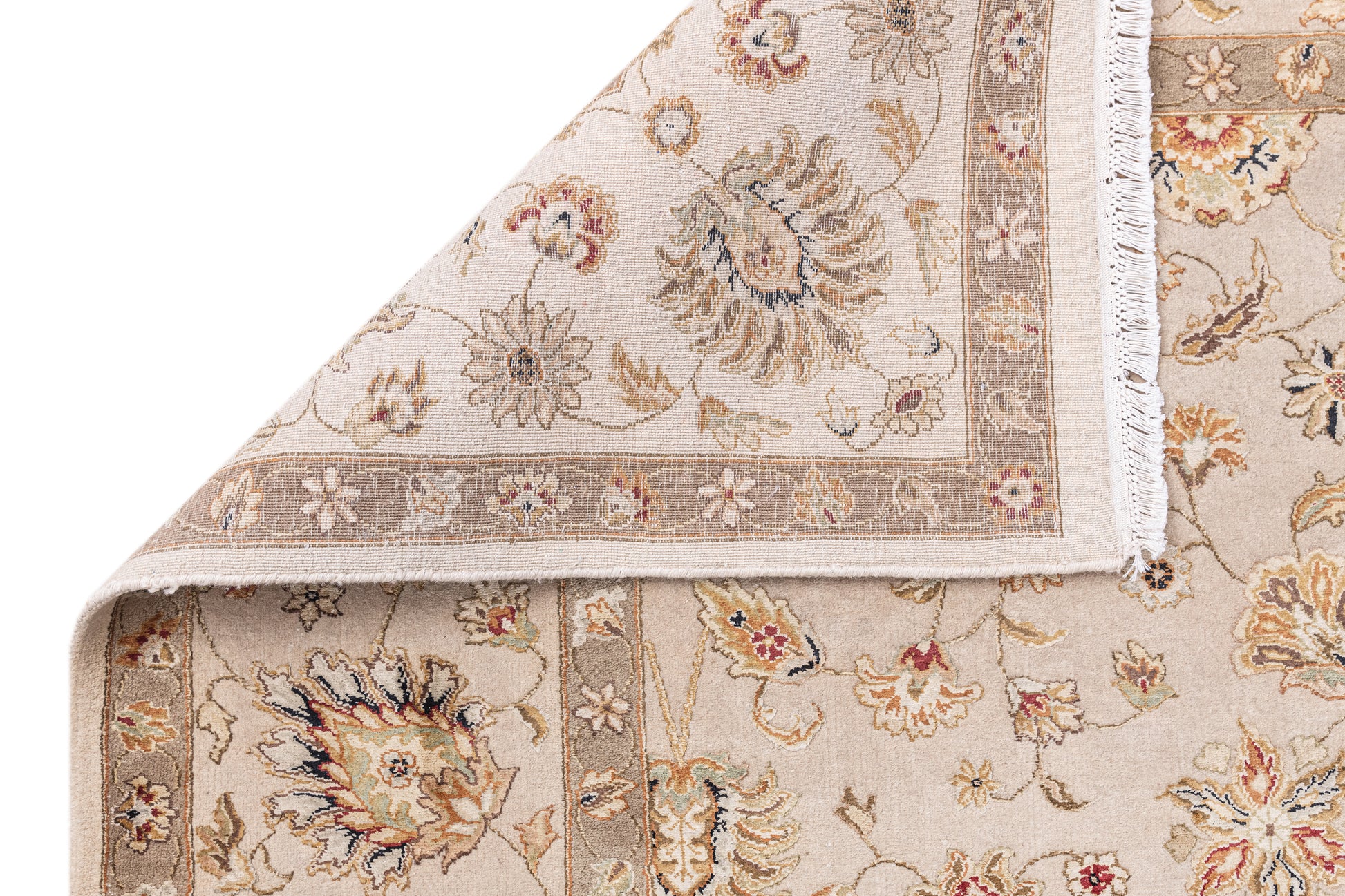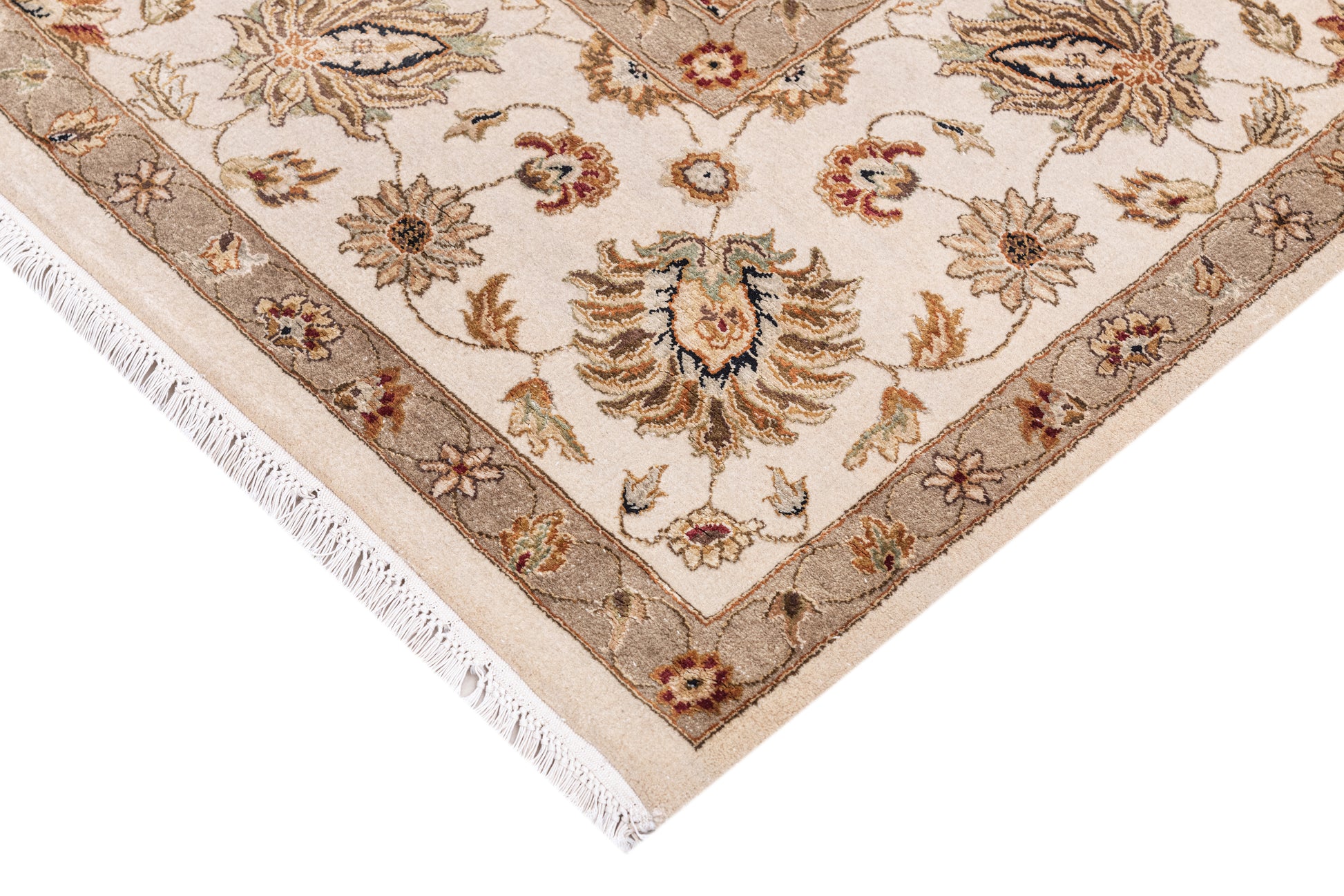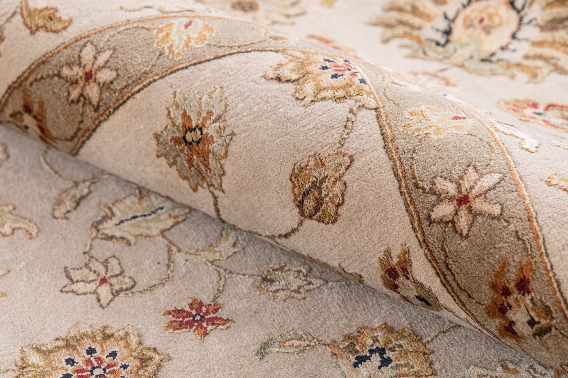 Traditional Wool & Silk Beige Handknotted Rug