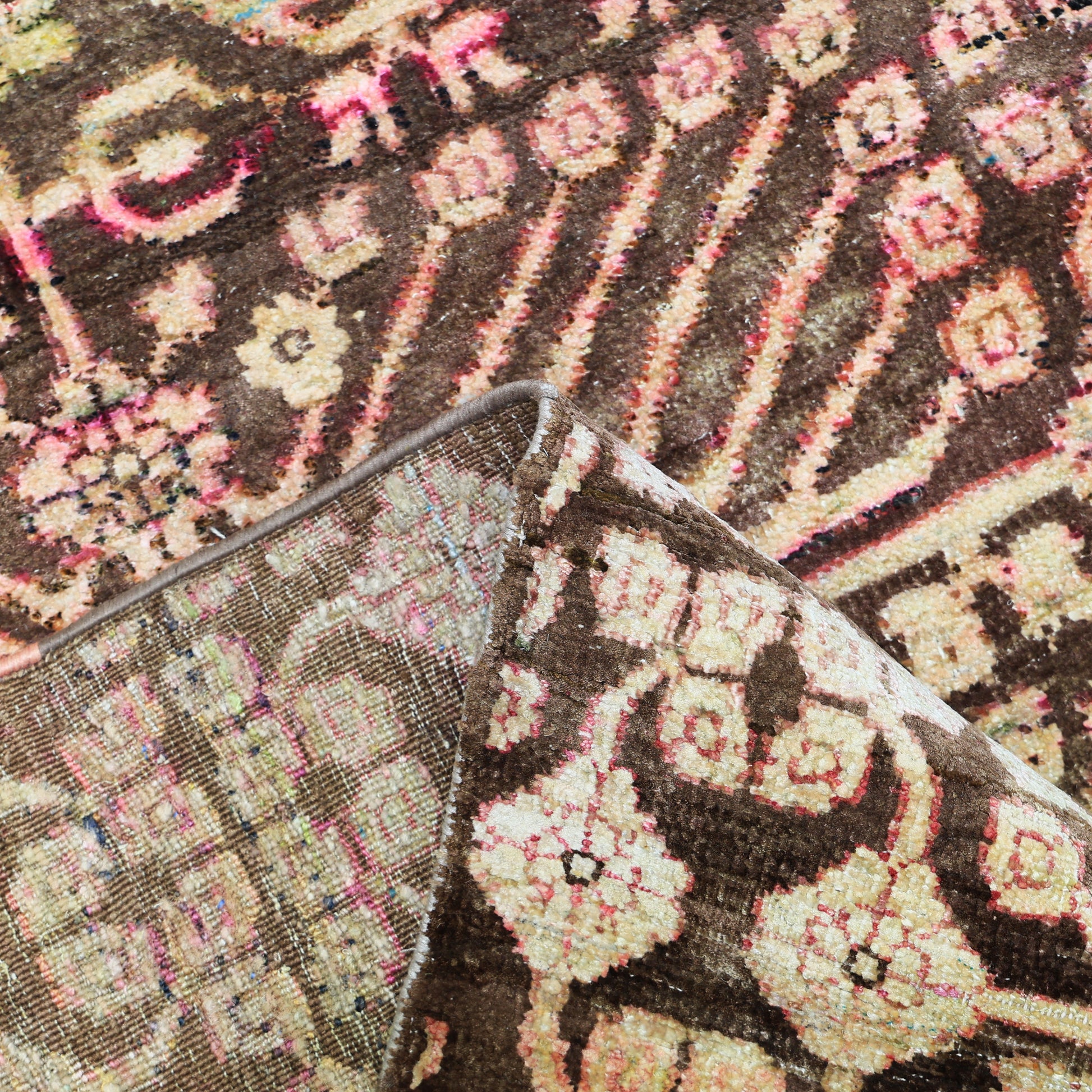Transitional Silk Brown Handknotted Rug