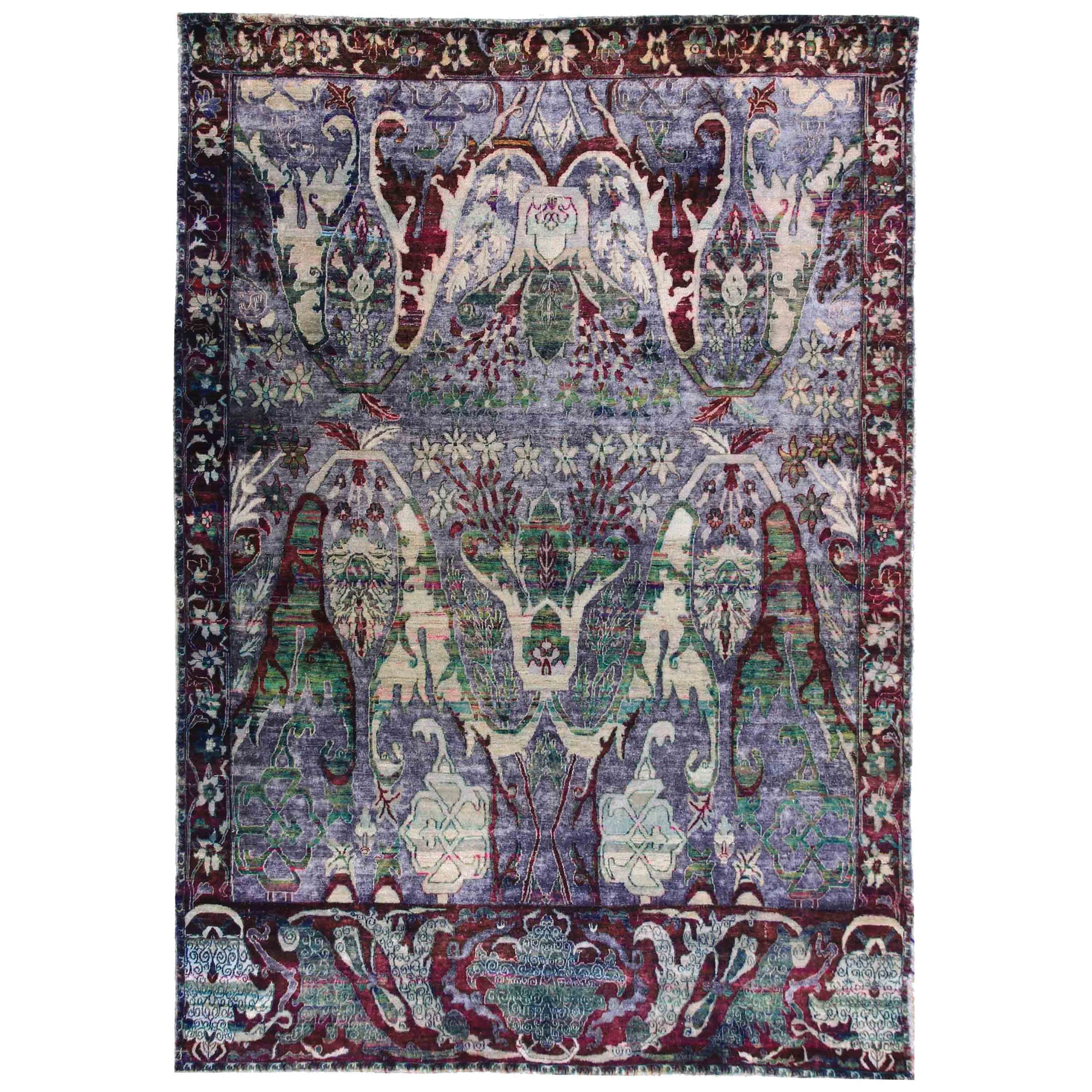 Transitional Silk & Wool Purple Handknotted Rug