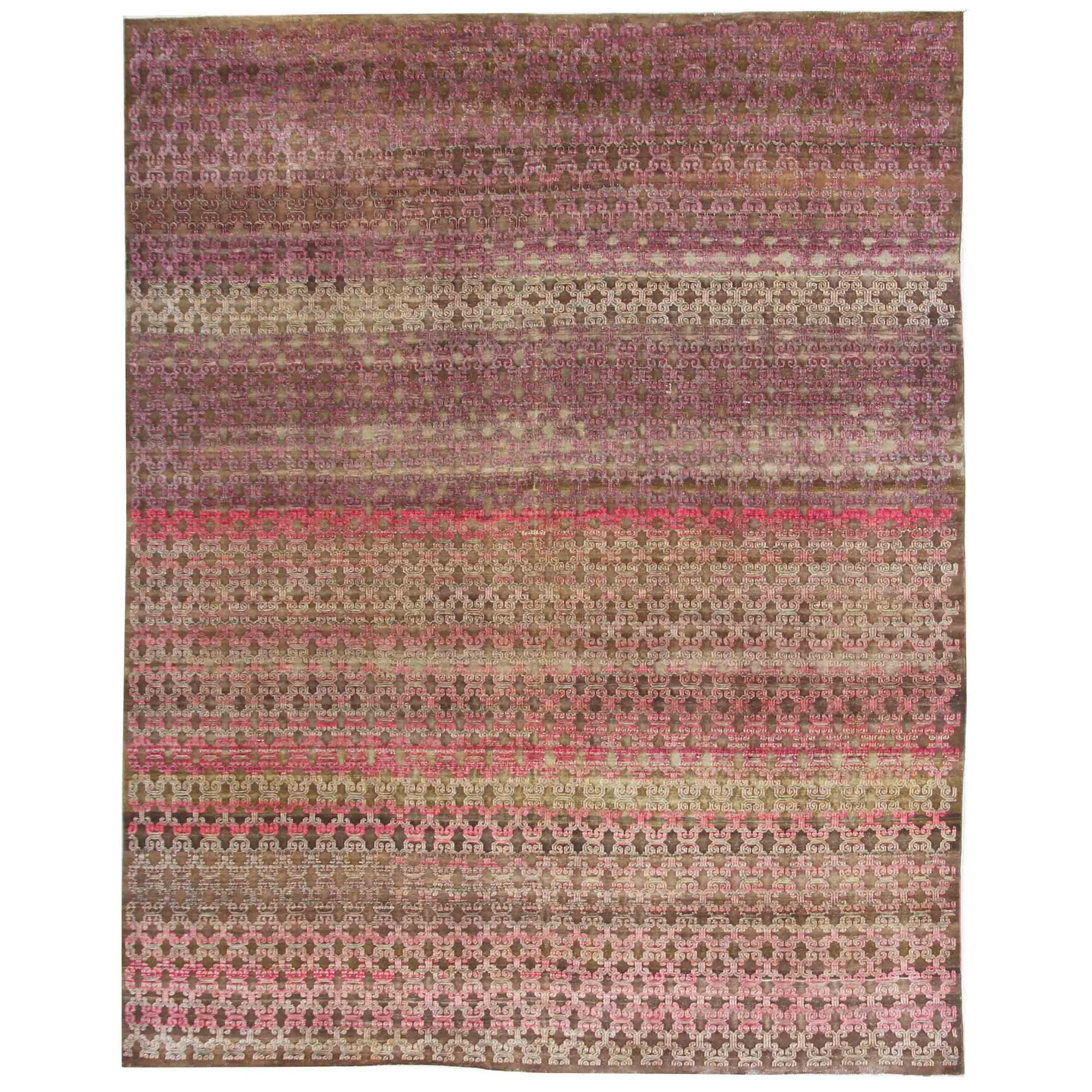 Transitional Silk & Wool Purple Handknotted Rug
