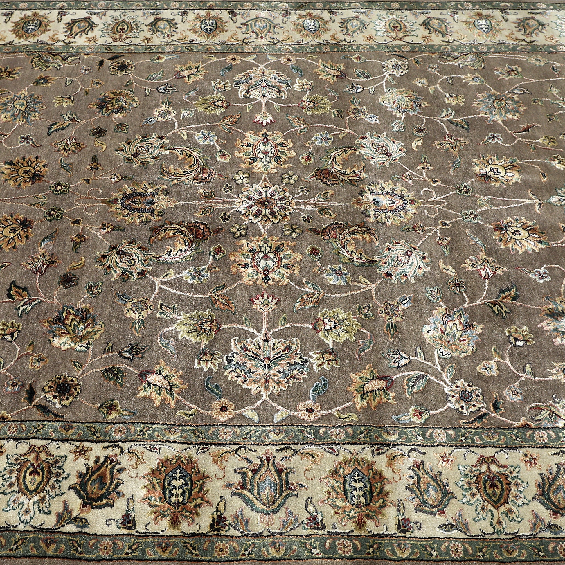 Transitional Wool & Silk Grey Handknotted Rug