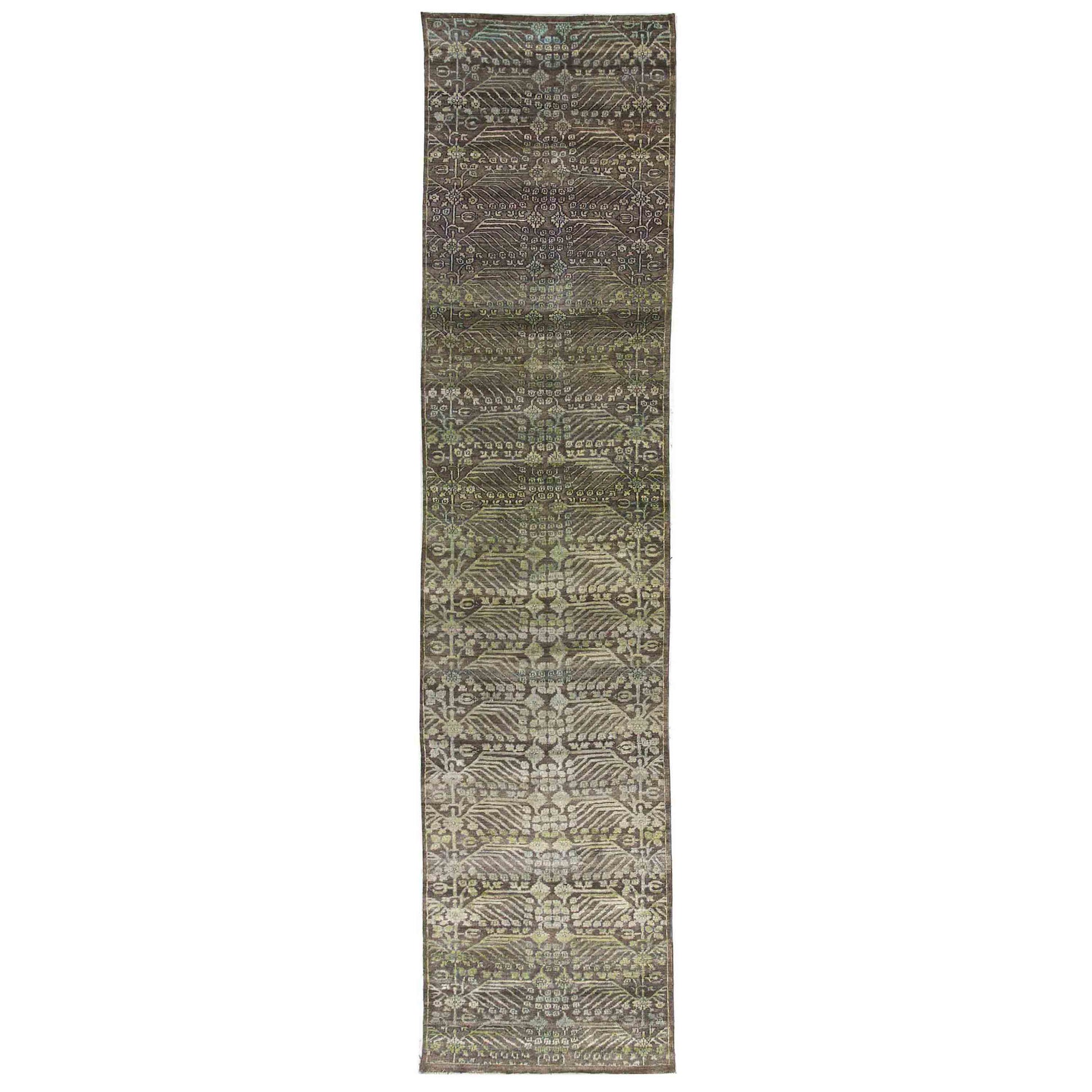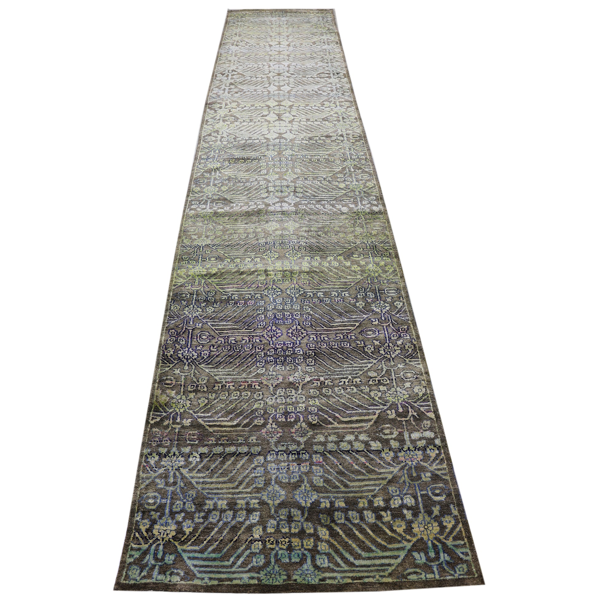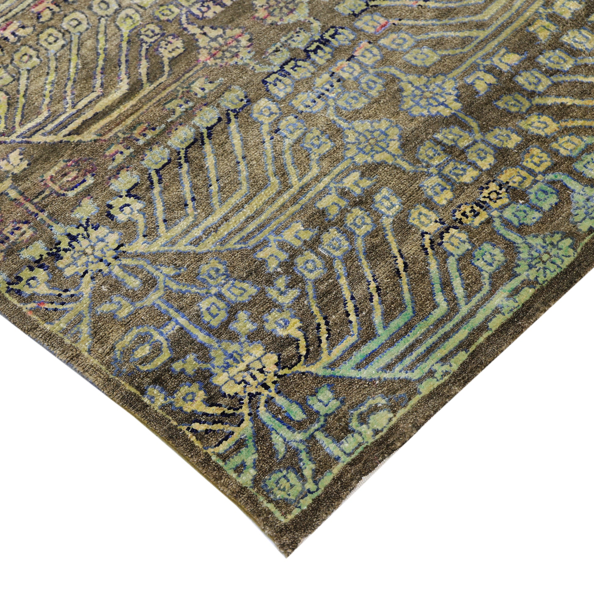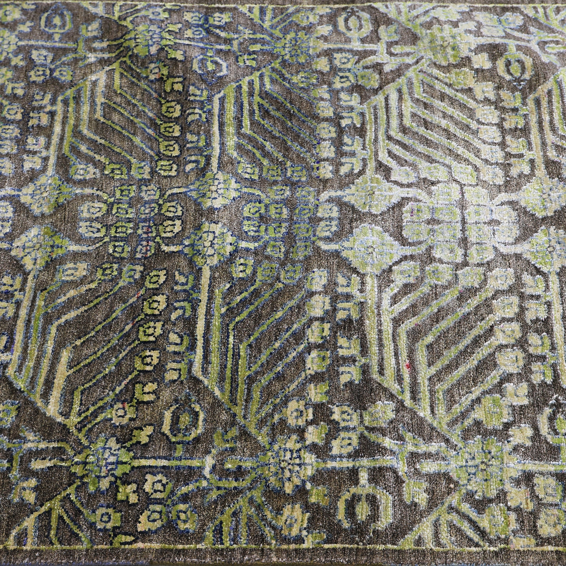 Transitional Wool & Silk Brown Handknotted Rug