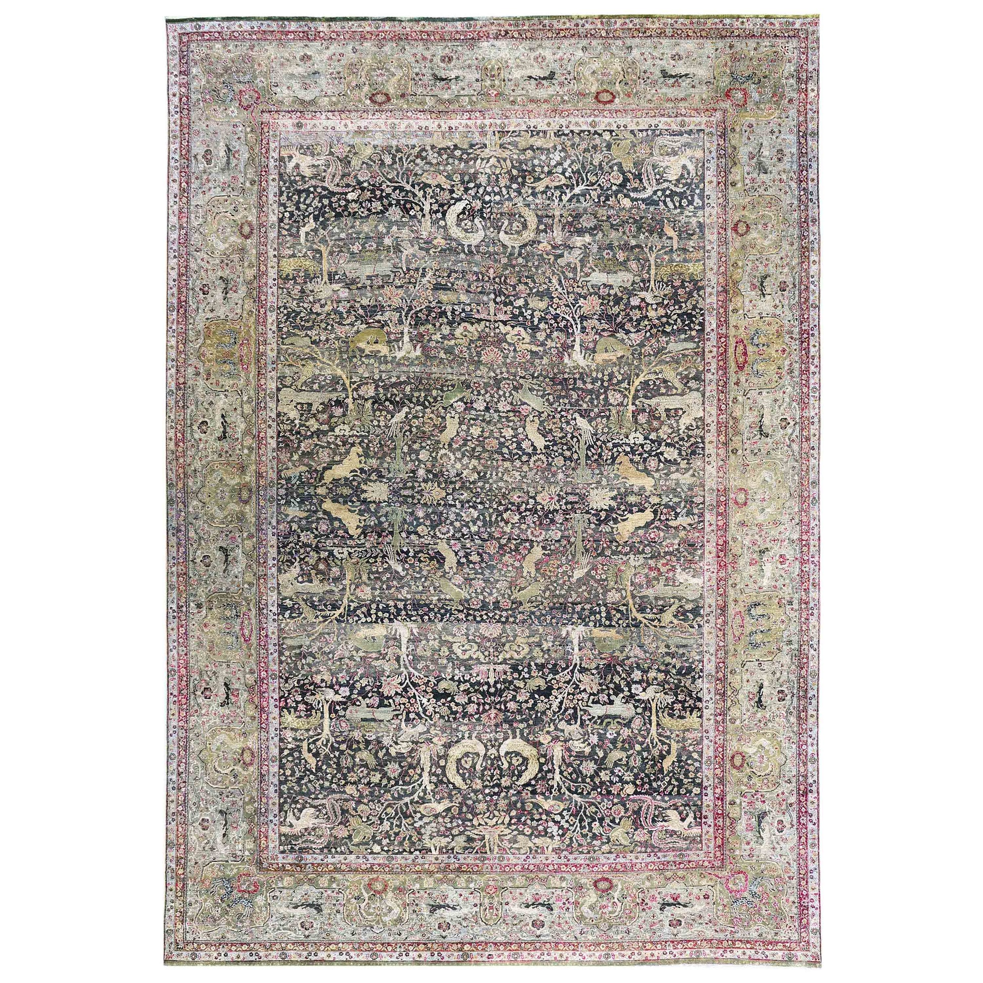 Transtional Silk & Wool Black Handknotted Rug