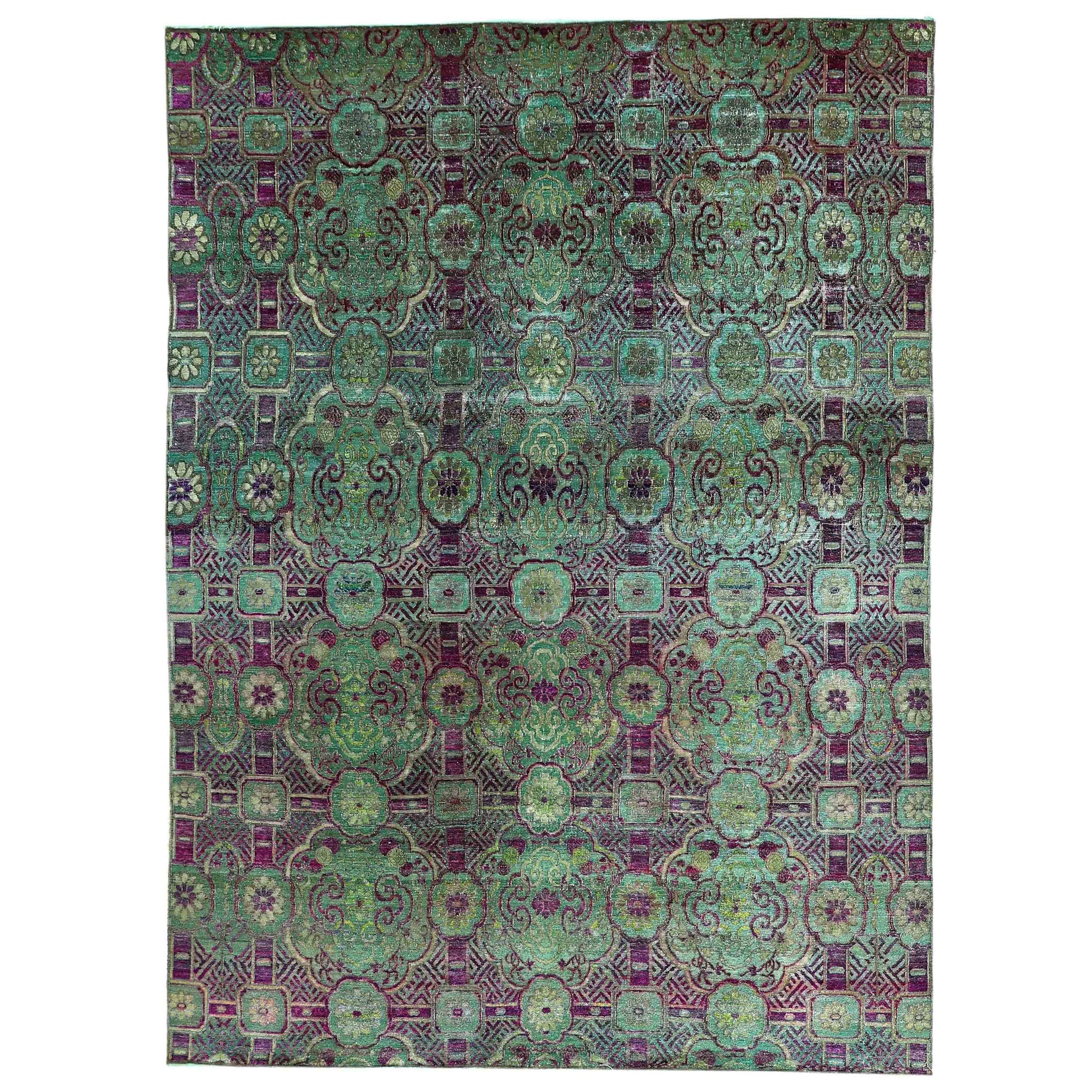 Transtional Silk & Wool Green Handknotted Rug