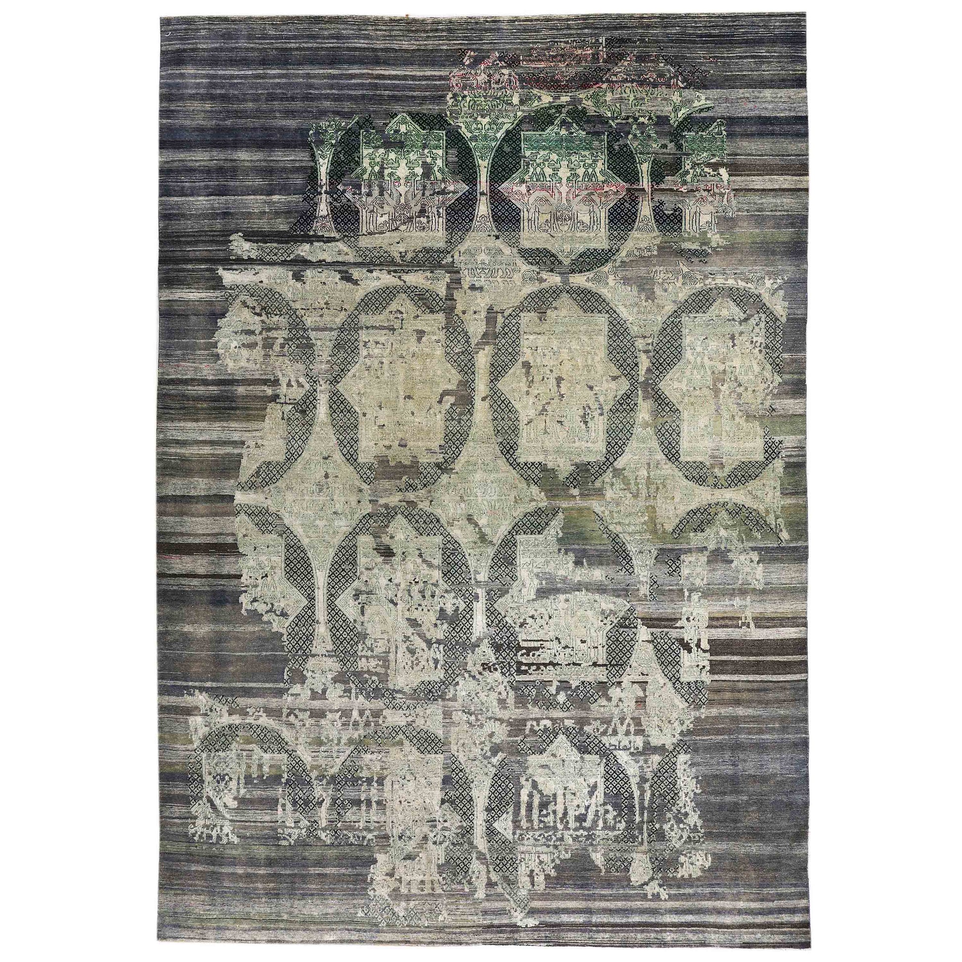 Transtional Silk & Wool Grey Handknotted Rug