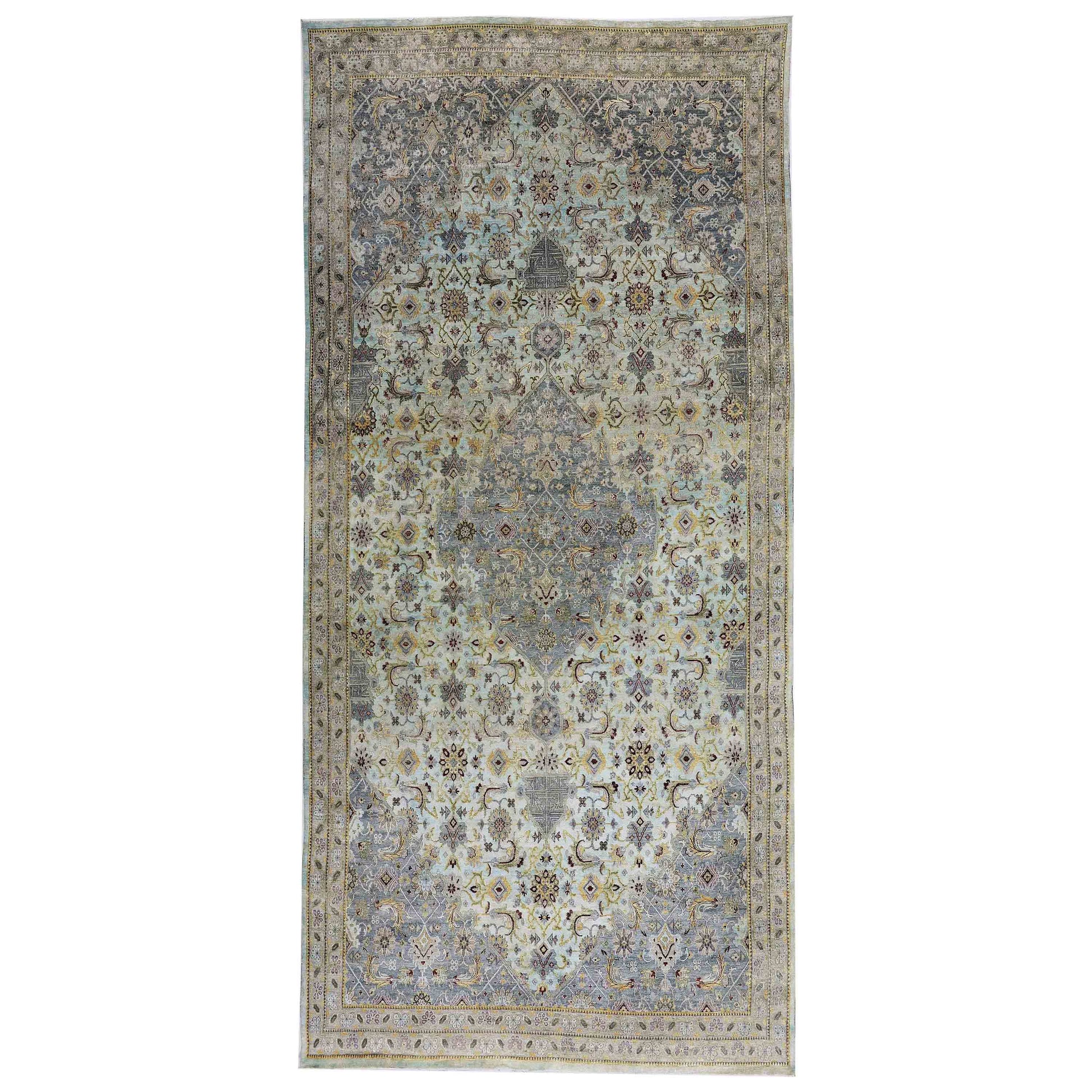Transtional Silk & Wool Grey Handknotted Rug